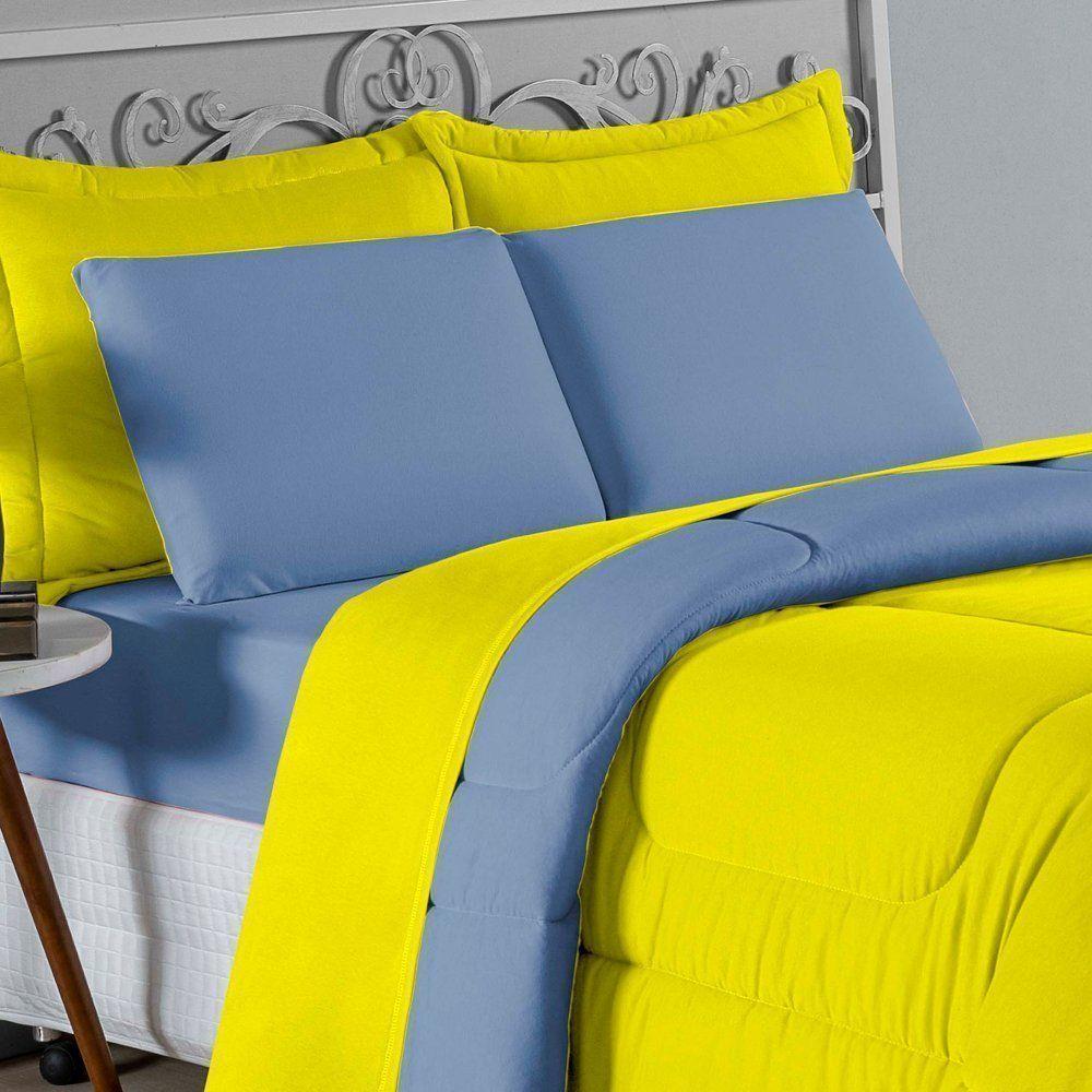 Edredom Casal Nobre 1 Peça Dupla Face 2,00m X 2,20m Malha 100% Algodão - Amarelo / Azul-bebêLeve o máximo de conforto para o seu quarto com o Edredom Casal Nobre. A união perfeita entre a elegância do design liso e a maciez incomparável da malha 100% algodão.Por que o Edredom Casal Nobre é uma ótima escolha?- Conforto Natural: Produzido em Malha 100% Algodão com Fio 30/1 Penteado, proporciona um toque extremamente suave e respirável, ideal para todas as estações.- Dupla Face Versátil: Com dois lados lisos e utilizáveis, você ganha praticidade para renovar a decoração da cama sempre que desejar.- Alta Durabilidade: O tratamento de fio penteado remove impurezas e fibras curtas, garantindo um tecido mais resistente, que não forma bolinhas (anti-pilling) e mantém a aparência de novo por muito mais tempo.- Aconchego Garantido: O enchimento em manta siliconada oferece o volume e o isolamento térmico perfeitos para noites de sono reparadoras.Produto composto por (Total 01 Peça):01 Edredom Casal Dupla Face 2,00m x 2,20mComposição:Tecido: Malha 100% Algodão - Fio 30/1 PenteadoEnchimento: 100% Poliéster Siliconada