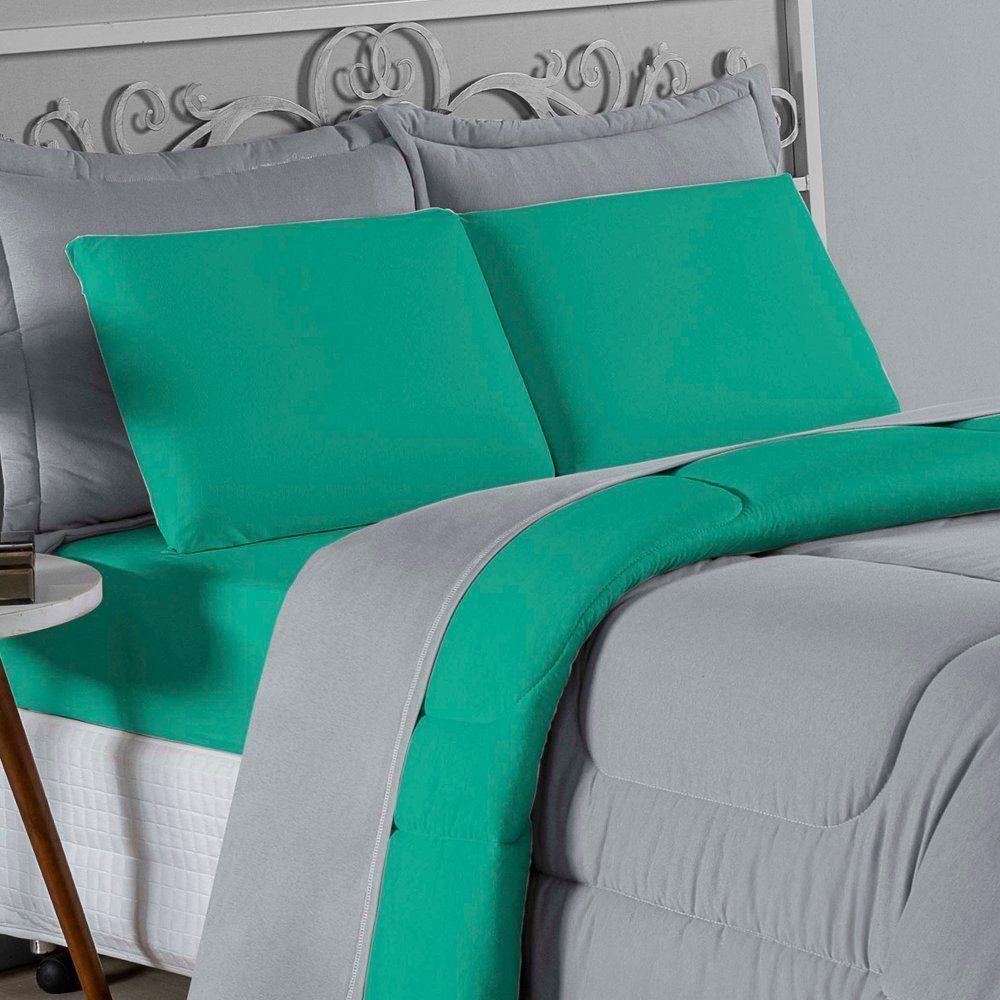 Edredom Casal Nobre 1 Peça Dupla Face 2,00m X 2,20m Malha 100% Algodão - Cinza / Jade