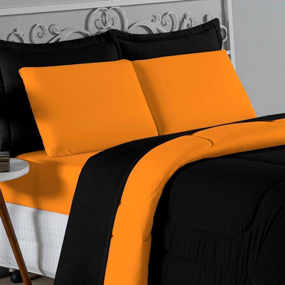 Edredom Casal Nobre 1 Peça Dupla Face 2,00m X 2,20m Malha 100% Algodão - Preto / Laranja