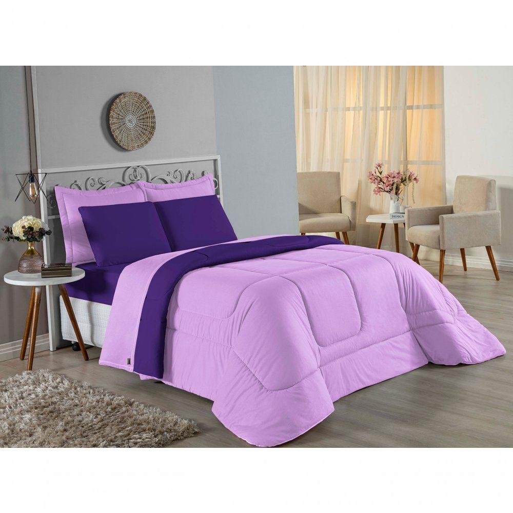 Edredom Solteiro Nobre 1 Peça Dupla Face 1,60m X 2,40m Malha 100% Algodão - Lilás / Roxo