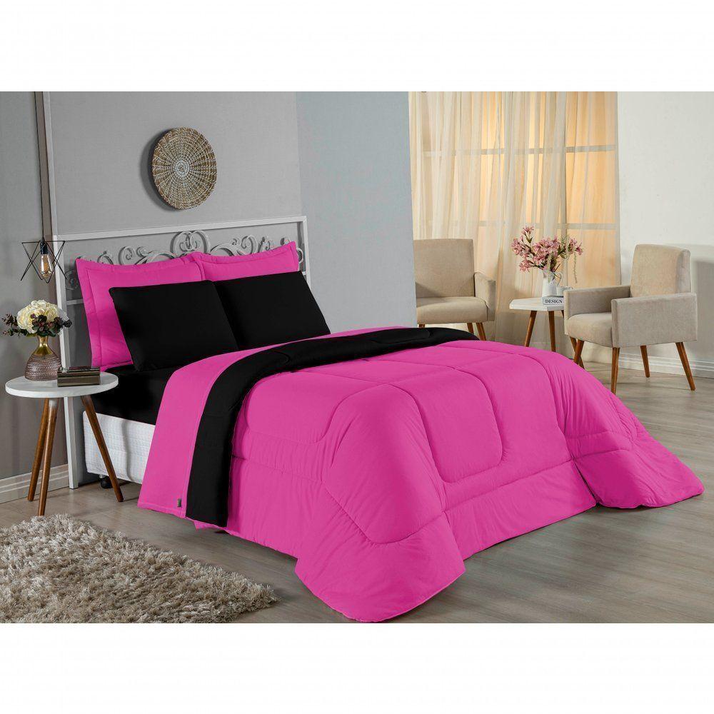 Edredom Queen Nobre 1 Peça Dupla Face 2,20m X 2,40m Malha 100% Algodão - Pink / PretoGaranta o aconchego que sua cama Queen merece com o Edredom Queen Nobre. Uma peça essencial para quem busca a combinação ideal entre o conforto térmico e a suavidade incomparável do algodão em fio penteado.Por que o Edredom Queen Nobre é uma ótima escolha?- Toque de Malha Premium: Confeccionado em 100% Algodão com Fio 30/1 Penteado, oferece uma sensação de abraço, sendo extremamente macio ao toque.- Design Dupla Face: Com acabamento liso em ambos os lados, permite diversas composições na decoração do quarto, unindo praticidade e estilo.- Qualidade Superior: O processo de fio penteado garante um tecido mais uniforme, resistente e livre de bolinhas, mantendo a beleza da peça por muito mais tempo.- Conforto Térmico Ideal: O enchimento em fibra de poliéster siliconada proporciona o volume certo para aquecer sem pesar, garantindo noites de sono perfeitas.Produto composto por (Total 01 Peça):01 Edredom Queen Dupla Face 2,20m x 2,40mComposição:Tecido: Malha 100% Algodão - Fio 30/1 PenteadoEnchimento: 100% Poliéster Siliconada