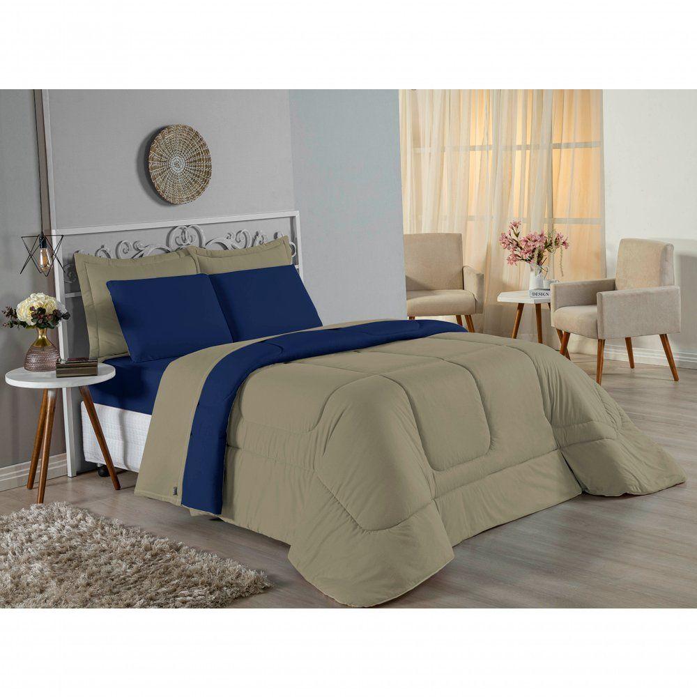 Edredom Queen Nobre 1 Peça Dupla Face 2,20m X 2,40m Malha 100% Algodão - Avelã / Azul-marinhoGaranta o aconchego que sua cama Queen merece com o Edredom Queen Nobre. Uma peça essencial para quem busca a combinação ideal entre o conforto térmico e a suavidade incomparável do algodão em fio penteado.Por que o Edredom Queen Nobre é uma ótima escolha?- Toque de Malha Premium: Confeccionado em 100% Algodão com Fio 30/1 Penteado, oferece uma sensação de abraço, sendo extremamente macio ao toque.- Design Dupla Face: Com acabamento liso em ambos os lados, permite diversas composições na decoração do quarto, unindo praticidade e estilo.- Qualidade Superior: O processo de fio penteado garante um tecido mais uniforme, resistente e livre de bolinhas, mantendo a beleza da peça por muito mais tempo.- Conforto Térmico Ideal: O enchimento em fibra de poliéster siliconada proporciona o volume certo para aquecer sem pesar, garantindo noites de sono perfeitas.Produto composto por (Total 01 Peça):01 Edredom Queen Dupla Face 2,20m x 2,40mComposição:Tecido: Malha 100% Algodão - Fio 30/1 PenteadoEnchimento: 100% Poliéster Siliconada