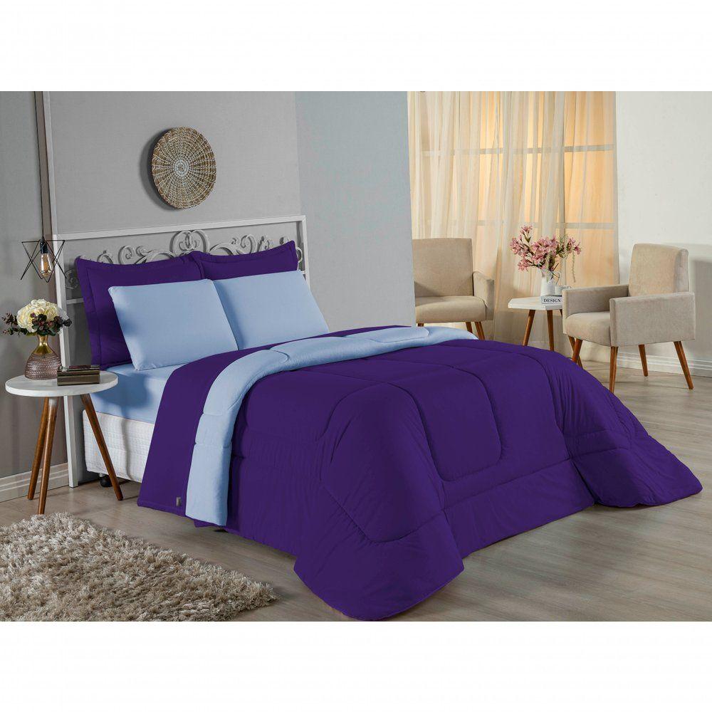 Edredom Queen Nobre 1 Peça Dupla Face 2,20m X 2,40m Malha 100% Algodão - Roxo / Azul-bebêGaranta o aconchego que sua cama Queen merece com o Edredom Queen Nobre. Uma peça essencial para quem busca a combinação ideal entre o conforto térmico e a suavidade incomparável do algodão em fio penteado.Por que o Edredom Queen Nobre é uma ótima escolha?- Toque de Malha Premium: Confeccionado em 100% Algodão com Fio 30/1 Penteado, oferece uma sensação de abraço, sendo extremamente macio ao toque.- Design Dupla Face: Com acabamento liso em ambos os lados, permite diversas composições na decoração do quarto, unindo praticidade e estilo.- Qualidade Superior: O processo de fio penteado garante um tecido mais uniforme, resistente e livre de bolinhas, mantendo a beleza da peça por muito mais tempo.- Conforto Térmico Ideal: O enchimento em fibra de poliéster siliconada proporciona o volume certo para aquecer sem pesar, garantindo noites de sono perfeitas.Produto composto por (Total 01 Peça):01 Edredom Queen Dupla Face 2,20m x 2,40mComposição:Tecido: Malha 100% Algodão - Fio 30/1 PenteadoEnchimento: 100% Poliéster Siliconada