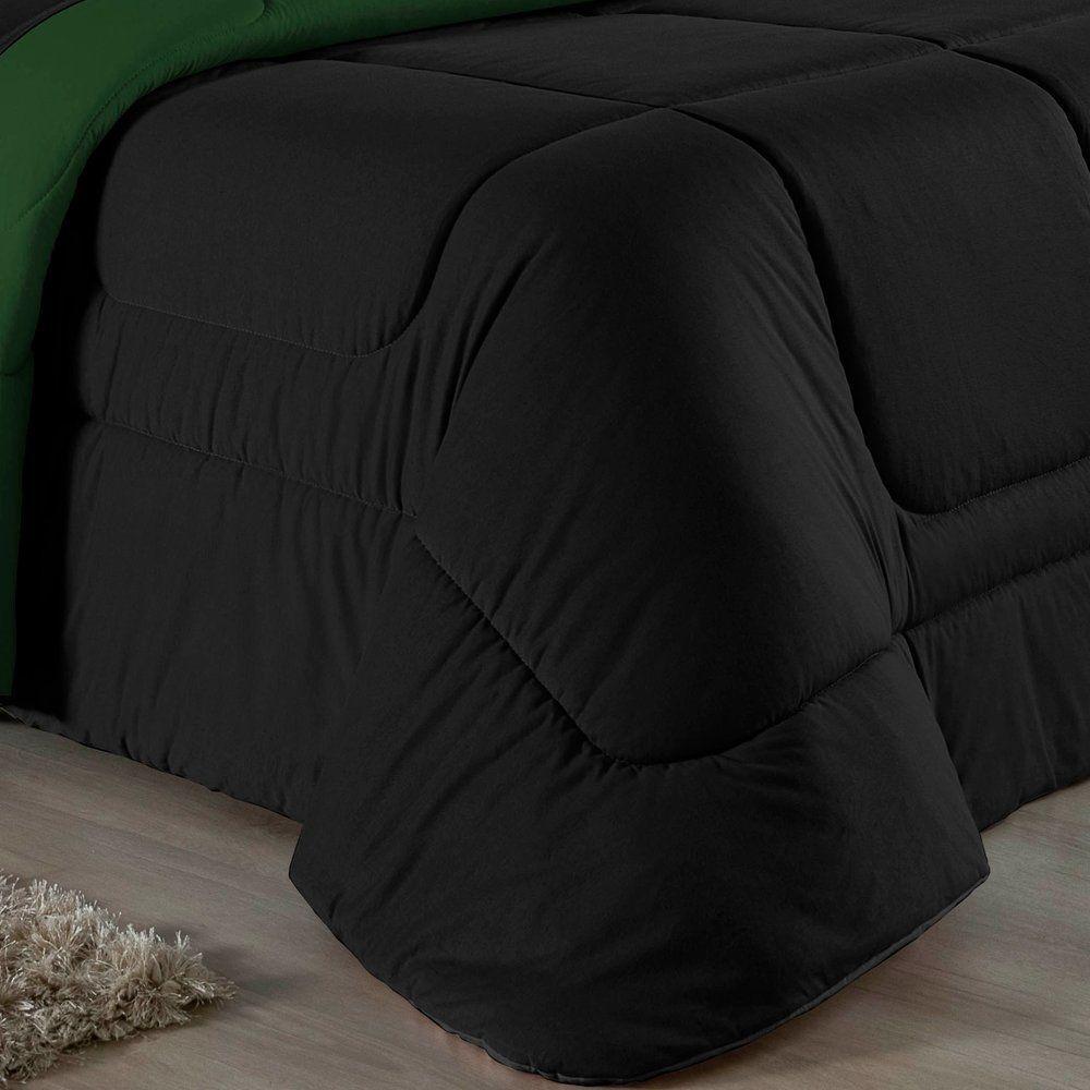 Edredom Queen Nobre 1 Peça Dupla Face 2,20m X 2,40m Malha 100% Algodão - Preto / Verde-bandeiraGaranta o aconchego que sua cama Queen merece com o Edredom Queen Nobre. Uma peça essencial para quem busca a combinação ideal entre o conforto térmico e a suavidade incomparável do algodão em fio penteado.Por que o Edredom Queen Nobre é uma ótima escolha?- Toque de Malha Premium: Confeccionado em 100% Algodão com Fio 30/1 Penteado, oferece uma sensação de abraço, sendo extremamente macio ao toque.- Design Dupla Face: Com acabamento liso em ambos os lados, permite diversas composições na decoração do quarto, unindo praticidade e estilo.- Qualidade Superior: O processo de fio penteado garante um tecido mais uniforme, resistente e livre de bolinhas, mantendo a beleza da peça por muito mais tempo.- Conforto Térmico Ideal: O enchimento em fibra de poliéster siliconada proporciona o volume certo para aquecer sem pesar, garantindo noites de sono perfeitas.Produto composto por (Total 01 Peça):01 Edredom Queen Dupla Face 2,20m x 2,40mComposição:Tecido: Malha 100% Algodão - Fio 30/1 PenteadoEnchimento: 100% Poliéster Siliconada