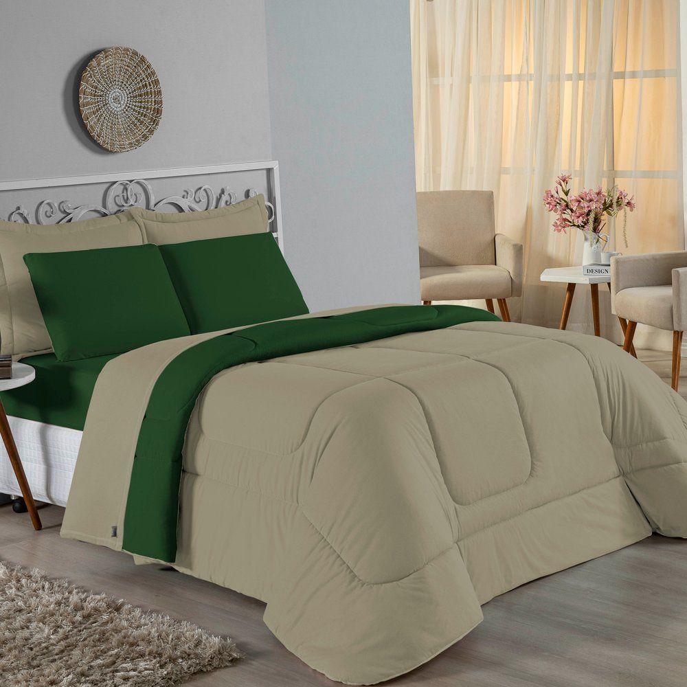 Edredom Queen Nobre 1 Peça Dupla Face 2,40m X 2,60m Malha 100% Algodão - Avelã / Verde-bandeiraExperimente um novo nível de conforto e cobertura com o Edredom Queen Nobre em tamanho ampliado. Com dimensões generosas de 2,40m x 2,60m, ele oferece um caimento impecável para camas Queen, garantindo elegância e noites de sono extremamente aconchegantes.Por que o Edredom Queen Nobre (Tamanho Especial) é a escolha perfeita?- Cobertura Perfeita: Com 2,40m x 2,60m, este edredom é maior que os modelos Queen tradicionais, sendo ideal para camas mais altas ou para quem gosta de um edredom com caimento mais longo nas laterais.- Toque Macio da Malha: Feito em Malha 100% Algodão com Fio 30/1 Penteado, proporciona um contato suave e delicado com a pele, sem aquecer excessivamente.- Qualidade Premium: O fio penteado assegura um tecido mais nobre, resistente à formação de bolinhas e com maior durabilidade, mantendo a aparência de novo por muito tempo.- Praticidade Dupla Face: O design liso em ambos os lados facilita a coordenação com diferentes jogos de cama e estilos de decoração.Produto composto por (Total 01 Peça):01 Edredom Queen Dupla Face 2,40m x 2,60mComposição:Tecido: Malha 100% Algodão - Fio 30/1 PenteadoEnchimento: 100% Poliéster Siliconada