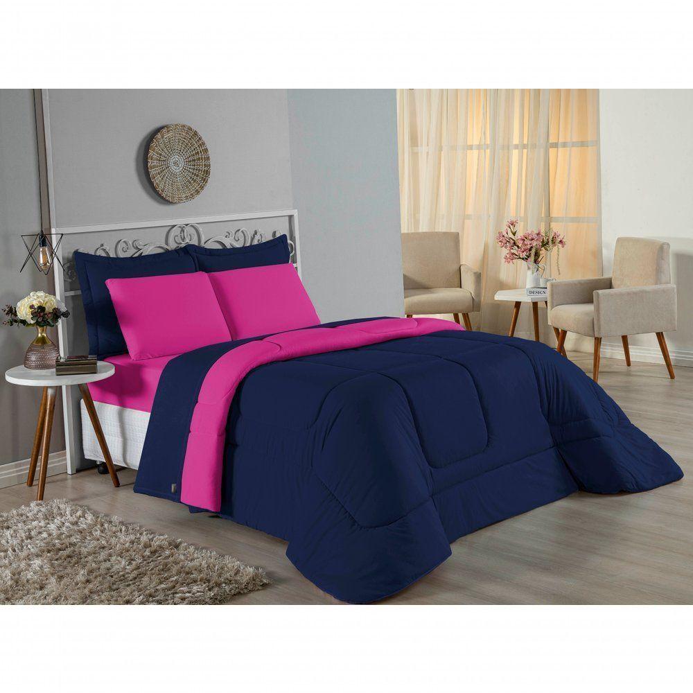 Edredom Queen Nobre 1 Peça Dupla Face 2,40m X 2,60m Malha 100% Algodão - Azul-marinho / PinkExperimente um novo nível de conforto e cobertura com o Edredom Queen Nobre em tamanho ampliado. Com dimensões generosas de 2,40m x 2,60m, ele oferece um caimento impecável para camas Queen, garantindo elegância e noites de sono extremamente aconchegantes.Por que o Edredom Queen Nobre (Tamanho Especial) é a escolha perfeita?- Cobertura Perfeita: Com 2,40m x 2,60m, este edredom é maior que os modelos Queen tradicionais, sendo ideal para camas mais altas ou para quem gosta de um edredom com caimento mais longo nas laterais.- Toque Macio da Malha: Feito em Malha 100% Algodão com Fio 30/1 Penteado, proporciona um contato suave e delicado com a pele, sem aquecer excessivamente.- Qualidade Premium: O fio penteado assegura um tecido mais nobre, resistente à formação de bolinhas e com maior durabilidade, mantendo a aparência de novo por muito tempo.- Praticidade Dupla Face: O design liso em ambos os lados facilita a coordenação com diferentes jogos de cama e estilos de decoração.Produto composto por (Total 01 Peça):01 Edredom Queen Dupla Face 2,40m x 2,60mComposição:Tecido: Malha 100% Algodão - Fio 30/1 PenteadoEnchimento: 100% Poliéster Siliconada