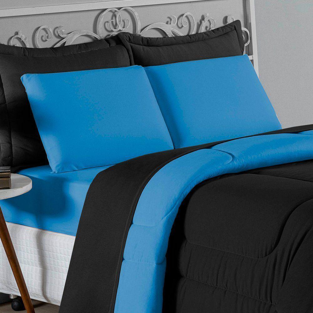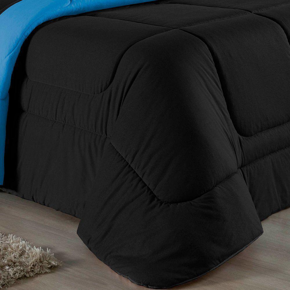 Edredom Queen Nobre 1 Peça Dupla Face 2,40m X 2,60m Malha 100% Algodão - Preto / Turquesa
