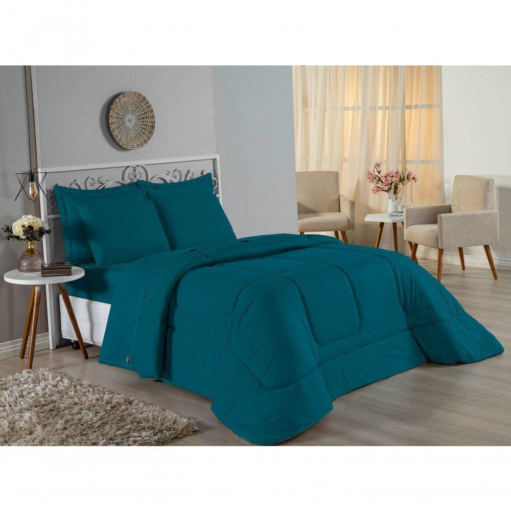 Kit Edredom Dupla Face + Jogo De Lençol Casal Nobre 7 Peças Malha 100% Algodão - PetróleoVista sua cama com elegância total e conforto absoluto com o Kit Cama Completa Casal Nobre 7 Peças. A solução definitiva para quem busca um enxoval completo, coordenado e com a maciez irresistível da malha de algodão.Por que este Kit é uma ótima escolha?- Jogo Completo 7 Peças: Inclui edredom, porta travesseiros decorativos e o jogo de cama completo (com lençol de cima e de baixo), oferecendo a experiência completa de conforto.- Malha Premium: Confeccionado em 100% Algodão Fio 30/1 Penteado, garantindo um toque suave, natural e livre de bolinhas.- Versatilidade na Decoração: O edredom dupla face permite variar o visual, enquanto o lençol de cima com vira adiciona charme à cama posta.- Aconchego e Praticidade: Une o aquecimento do edredom à facilidade do lençol com elástico, perfeito para o dia a dia.Produto composto por (Total 07 Peças):Do Kit Edredom (03 Peças):01 Edredom Casal Dupla Face: 2,00m x 2,20m02 Porta Travesseiros Matelados: 50cm x 70cmDo Jogo de Lençol (04 Peças):01 Lençol de Cima (Virol): 2,40m x 2,20m01 Lençol de Baixo com Elástico: 1,38m x 1,98m x 30cm02 Fronhas: 70cm x 50cmComposição:Tecido (Todas as peças): Malha 100% Algodão - Fio 30/1 PenteadoEnchimento (Edredom e Porta Travesseiros): 100% Poliéster (Edredom com fibra siliconada)Forro (Apenas Porta Travesseiros): 100% Polipropileno