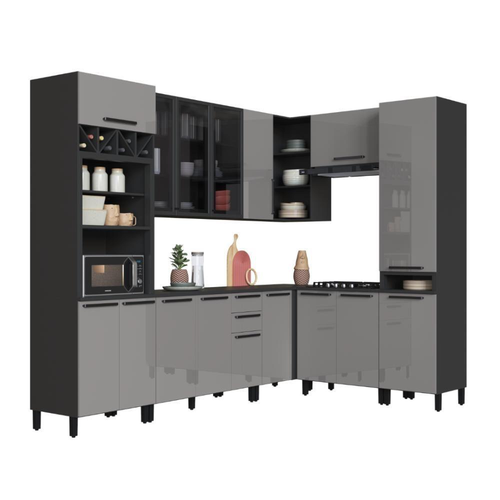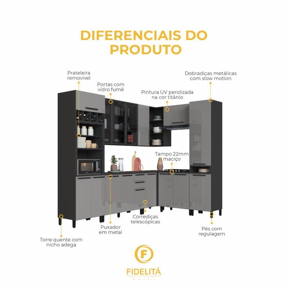 Cozinha Modulada Completa Fidelitá Mônaco 8 Peças 469cm 16 Portas 2 Gavetas Com Tampo Chumbo/titânio