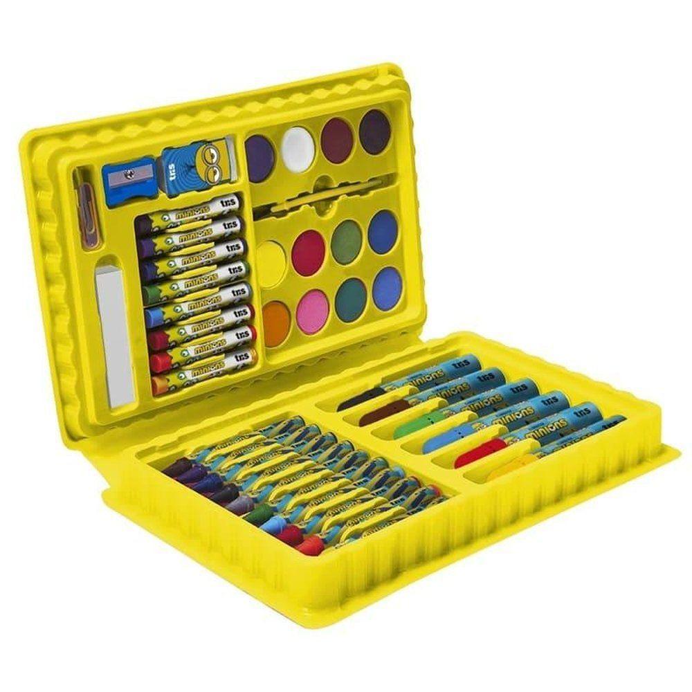 Maleta Artistica Minions 42pcsMaleta Artistica Minions 42pcs -A maleta artística Minions é diversão garantida! Contém 42 peças para deixar a criatividade fluir.Contém:12 cores de aquarela;10 giz de cera;08 pasteis oleosos;06 hidrocores ponta grossa;02 clipes de papel;01 Pincel;01 Apontador;01 Borracha;01 Esponja;Dimensões:FechadaAltura: 3 cm;Largura: 21 cm;Comprimento: 13 cm;AbertaLargura: 21 cm;Comprimento: 30 cm;Características Gerais do Produto: