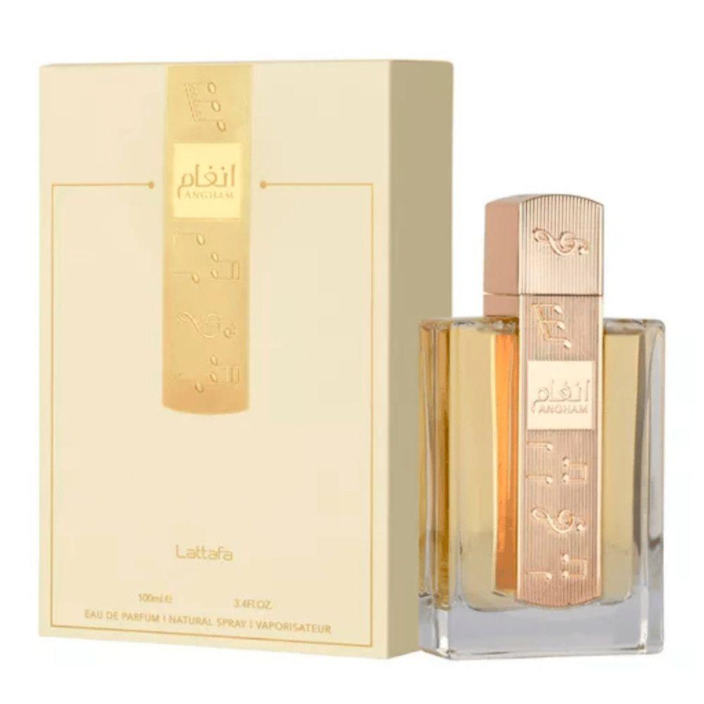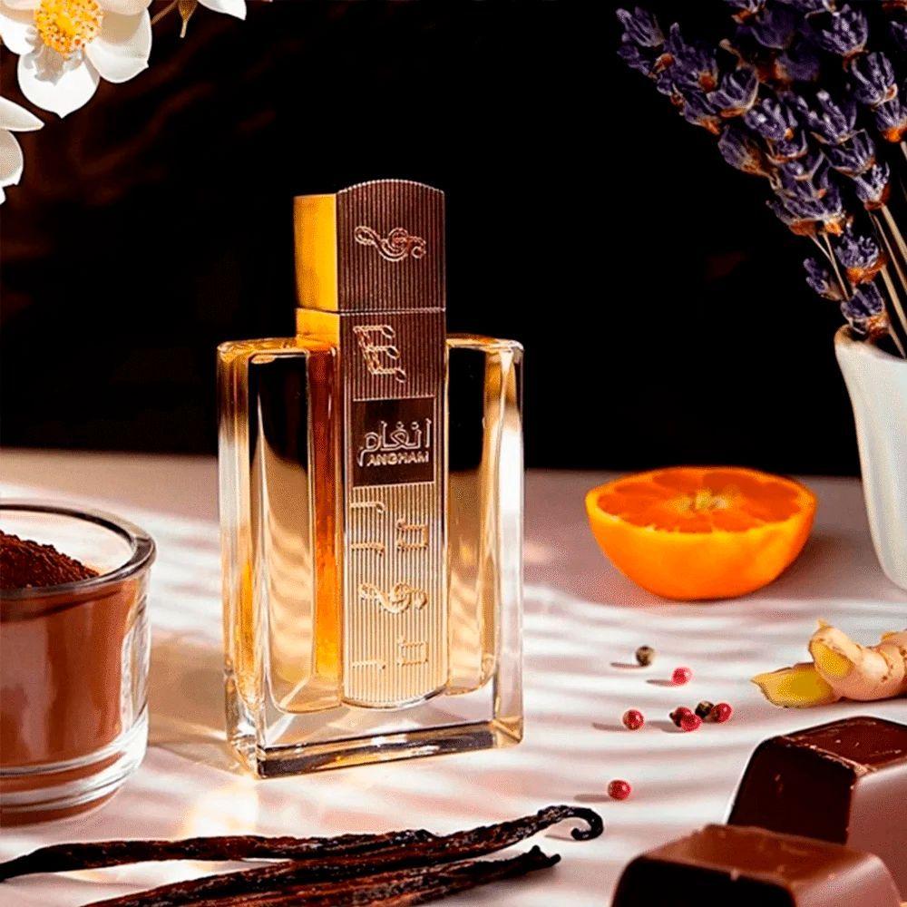 Perfume Lattafa Angham Edp Unissex 100mlPerfume Lattafa Angham é uma fragrância unissex sofisticada, que traduz elegância e presença em cada borrifada. Ideal para quem busca versatilidade, combina uma composição oriental gourmand com frescor contemporâneo, tornando-se uma escolha memorável tanto para o dia a dia quanto para eventos especiais.A abertura apresenta uma combinação vibrante de gengibre, mandarina e pimenta rosa, criando uma sensação energética e levemente picante que desperta os sentidos imediatamente.No coração, notas aveludadas de lavanda, pralinê, cacau e jasmim oferecem um buquê gourmand floral equilibrado e envolvente, equilibrando doçura e sofisticação de forma encantadora.A base é rica e calorosa, com baunilha, âmbar e almíscar que conferem profundidade, fixação prolongada e um rastro marcante. Angham é a fragrância perfeita para quem procura um aroma equilibrado, cativante e contemporâneo.Notas Olfativas:Notas de Topo: Gengibre, Mandarina e Pimenta Rosa.Notas de Coração: Lavanda, Pralinê, Cacau e Jasmim.Notas de Fundo: Baunilha, Âmbar e Almíscar.*Imagens Meramente Ilustrativas.*As cores do produto podem variar de acordo com o monitor, a iluminação do ambiente e a sua percepção visual.*Verifique nossas políticas internas para que não haja nenhuma dúvida no processo de entrega ao finalizar a compra.