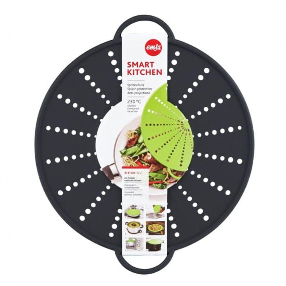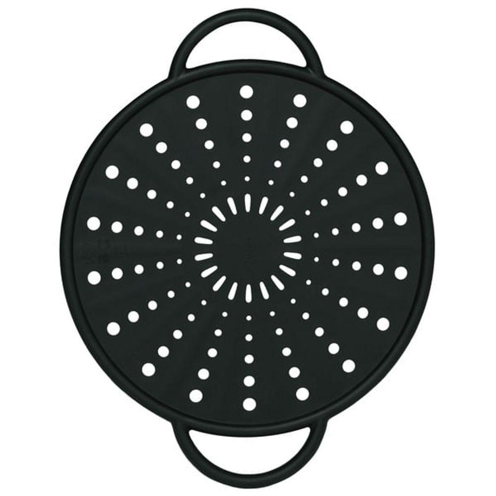 Tampa Multiuso 21cm Smartkitchen Emsa PretoA Tampa Multiuso 6 em 1 da EMSA é a aliada ideal para quem busca versatilidade e eficiência no dia a dia. Produzida em silicone resistente ao calor, ela suporta até 230°C e se adapta a diferentes necessidades com um único produto: tampa antirrespingos, descanso de panela, protetor contra transbordamento, escorredor seguro, tampa para micro-ondas e base para pizzas crocantes.Fácil de usar e ainda mais fácil de limpar, é compatível com lava-louças e ocupa pouco espaço. Com design inteligente e multifuncional, a Tampa EMSA transforma tarefas simples em momentos ainda mais práticos e seguros na sua cozinha.Especificações do produto:- Resiste a altas temperaturas, é ideal para uso em fogão, forno e micro-ondas- Design 6 em 1 que funciona como tampa, escorredor, descanso de panela e mais- Feita em silicone de alta qualidade, flexível, durável e fácil de limpar- Compatível com lava-louças, facilitando a rotina na cozinha- Evita respingos, transbordamentos e ajuda a manter o fogão e o forno limposFicha técnica:- Código: 4080050527- Marca: Emsa- Modelo: Smartkitchen - Conteúdo da Embalagem: 1 Tampa Multiuso - Material: Silicone- Temperatura: até 230°C- Cor: Preto- Peso: 0,174kg- Dimensões: 1,2cm x 21cm x 26,7cm (AxLxP)- Garantia: 3 Meses - Contra defeito de fabricaçãoAltura - 1,2cmLargura - 21cmProfundidade - 26,7cmPeso - 0,174kgSobre a Marca - Além de focar na qualidade dos seus produtos, a Emsa se preocupa com o meio ambiente: faz uso apenas de matéria prima 100% segura, otimiza sua cadeia de carbono e poupa recursos, desde a produção até a embalagem.