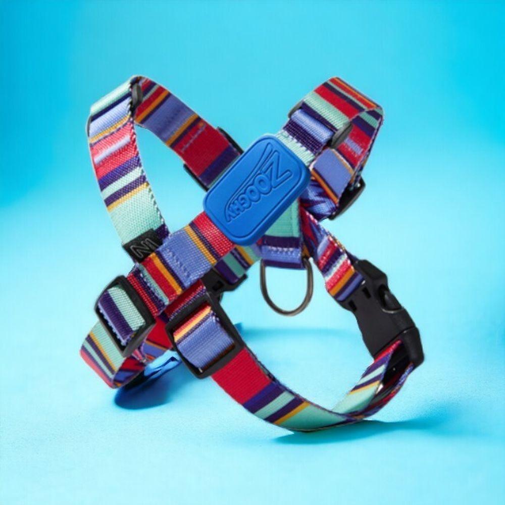 Peitoral Em X E Guia Para Cães Raios E Listras Azul - M