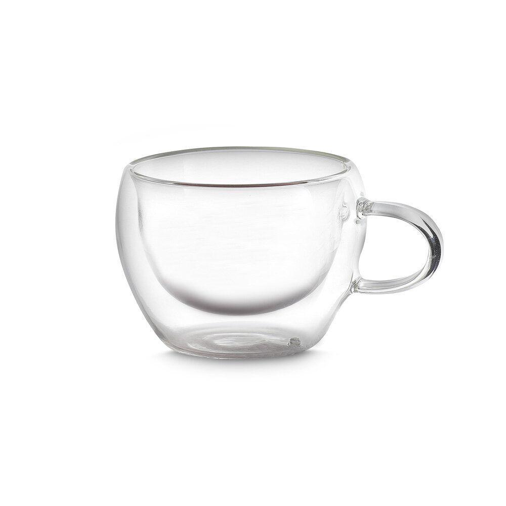Kit 2 Xícaras Vidro Borossilicato Parede Dupla 60ml Com Suporte Bambu