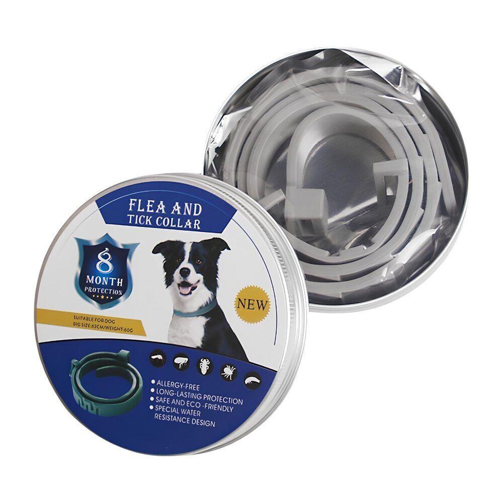 Coleira Antipulgas Para Cães Ajustável 63cm Cinza óleo Essencial Com Caixa De Alumínio