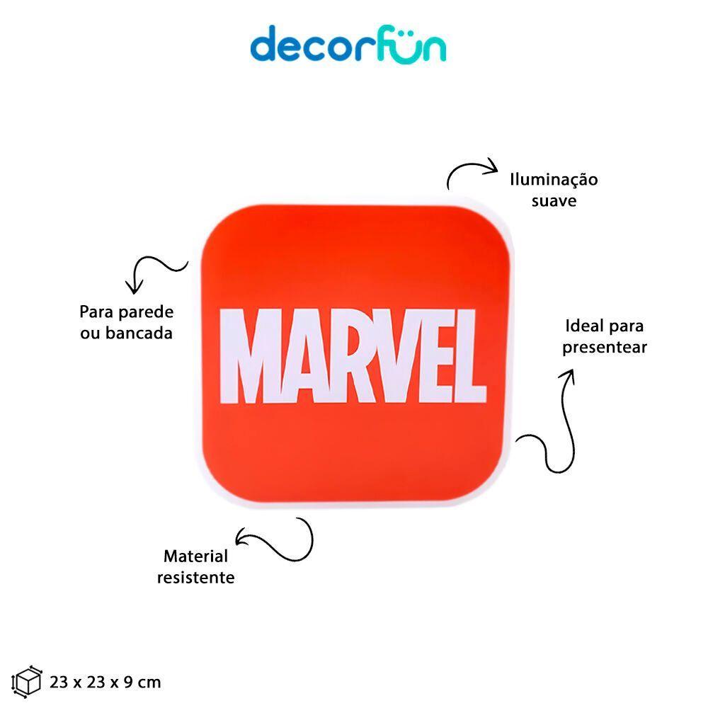 Luminária Box Red Icon MarvelPerfeita para sua decoração, a Luminária Box Red Icon Marvel, vai encantar seu quarto, aquele seu cantinho especial ou o ;seu escritório. Essa luminária vai agregar no seu espaço de leitura por ser uma luz difusa, o que não agride a visão, além de deixar o local com uma iluminação mais baixa. Sendo bivolt com a Luminária Box Red Icon Marvel, você não precisa se preocupar com nada, basta ligar na tomada e ligar.<address> ;</address>Especificações do produto:Material: Polietileno ;e componentes eletrônicosDimensões: 23 x 23 x 9 ;cmAlimentação: Cabo de força com interruptor medindo 1,8m de comprimentoCuidados: Limpar com pano úmido e macioInformações adicionais: Compactas fluorescentes até 10W ou LED compatível com abertura inferior da luminária (lâmpadas não inclusas) (E-27)Cuidados: Limpar com pano úmido e macio. Teme químicos e abrasivos. Não utilizar lâmpadas incandescentes de qualquer tipo.Perguntas frequentesA luminária pode ser pendurada na parede ?Sim ela pode ser pendurada na parede, já consta com furos para ser instalada (parafusos não inclusos).Perfeita para sua decoração, a Luminária Box Red Icon Marvel, vai encantar seu quarto, aquele seu cantinho especial ou o ;seu escritório. Essa luminária vai agregar no seu espaço de leitura por ser uma luz difusa, o que não agride a visão, além de deixar o local com uma iluminação mais baixa. Sendo bivolt com a Luminária Box Red Icon Marvel, você não precisa se preocupar com nada, basta ligar na tomada e ligar.<address> ;</address>Especificações do produto:Material: Polietileno ;e componentes eletrônicosDimensões: 23 x 23 x 9 ;cmAlimentação: Cabo de força com interruptor medindo 1,8m de comprimentoCuidados: Limpar com pano úmido e macioInformações adicionais: Compactas fluorescentes até 10W ou LED compatível com abertura inferior da luminária (lâmpadas não inclusas) (E-27)Cuidados: Limpar com pano úmido e macio. Teme químicos e abrasivos. Não utilizar lâmpadas incandescentes de qualquer tipo.Perguntas frequentesA luminária pode ser pendurada na parede ?Sim ela pode ser pendurada na parede, já consta com furos para ser instalada (parafusos não inclusos).