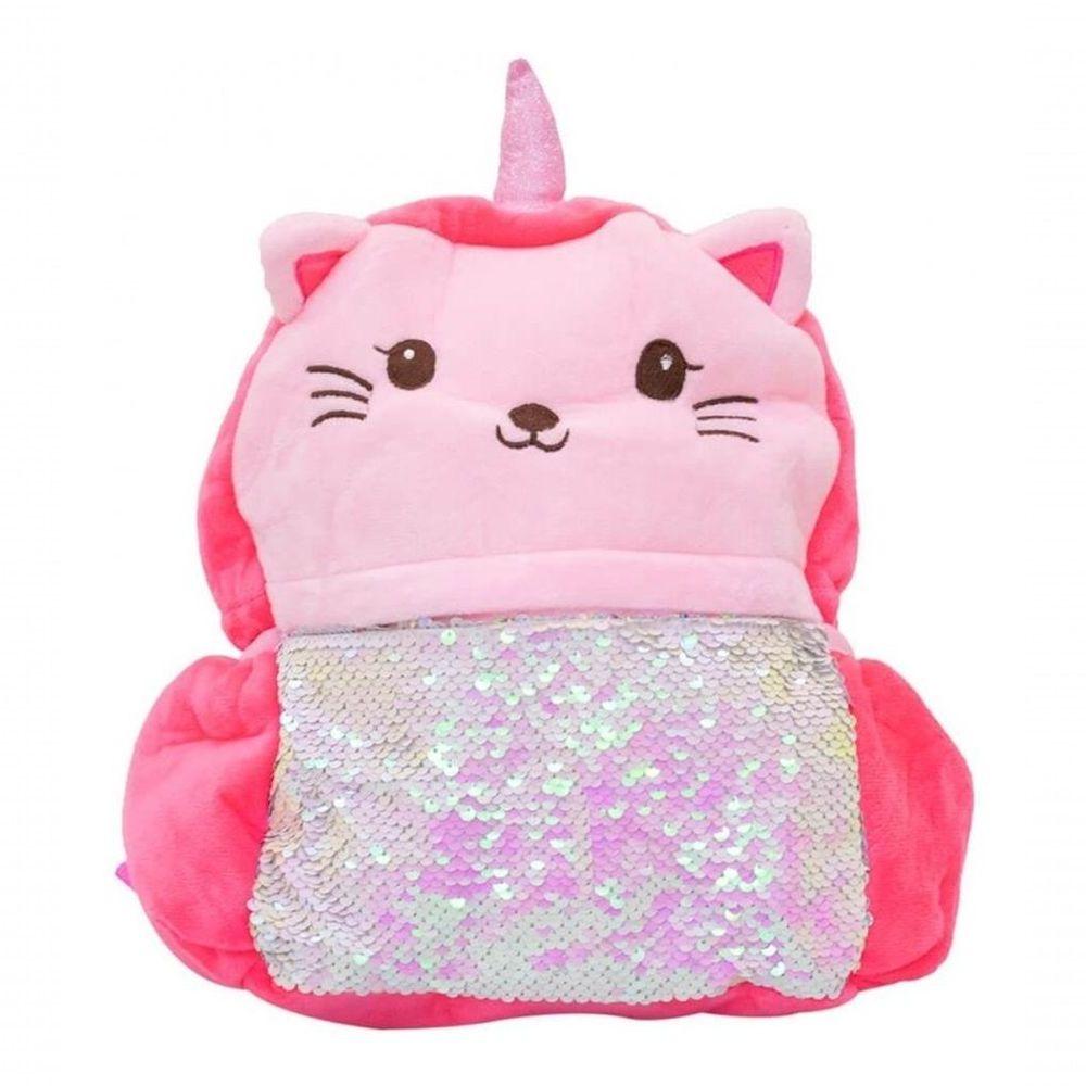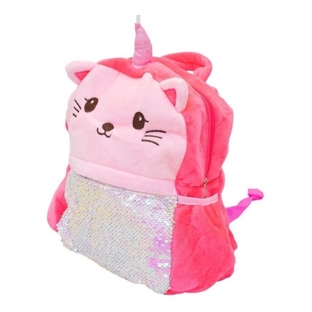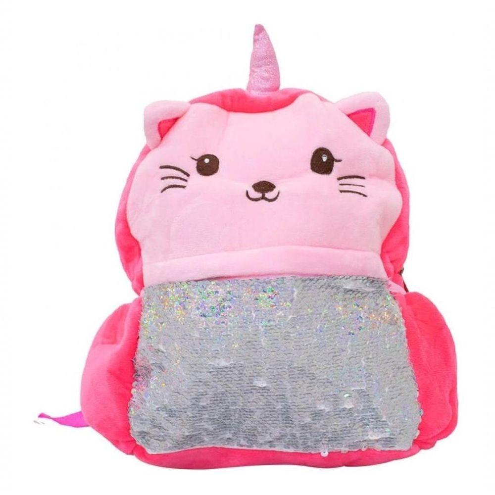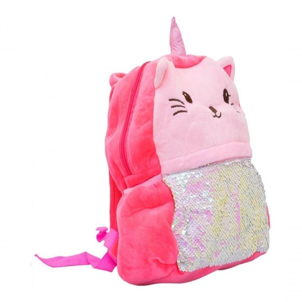 Mini Mochila Infantil Rosa Sereia Gato Pelúcia 30x30cm Creche Escolar Escolinha