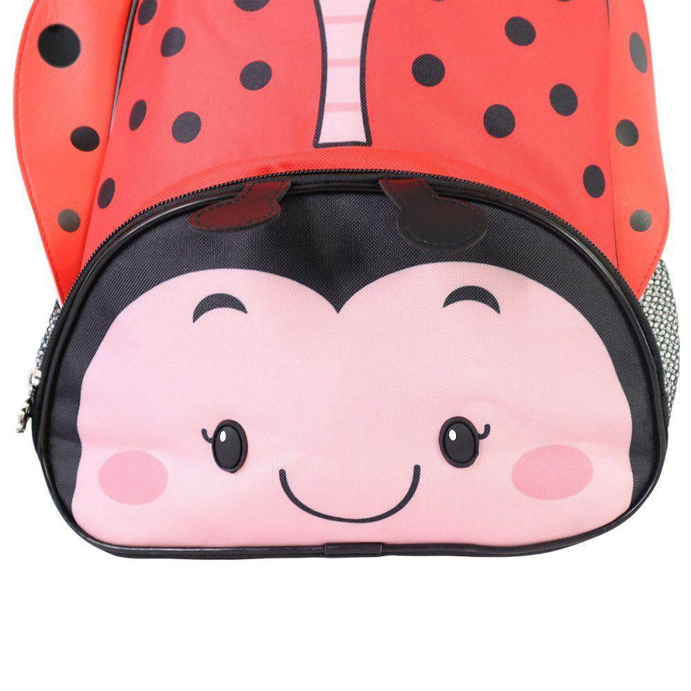 Mochila Infantil Joaninha Com Alças Bolsos Laterais Detalhes