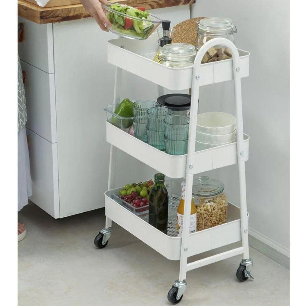 Prateleira De Metal Multiuso 3 Andares Com Rodinhas - Branco