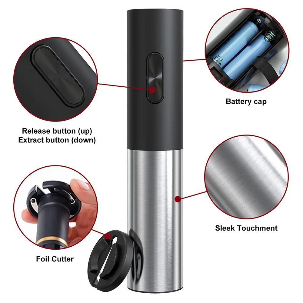 Abridor Vinhos Eletrico Saca Rolhas Automatico Portatil Inox Premium Adega A Pilha