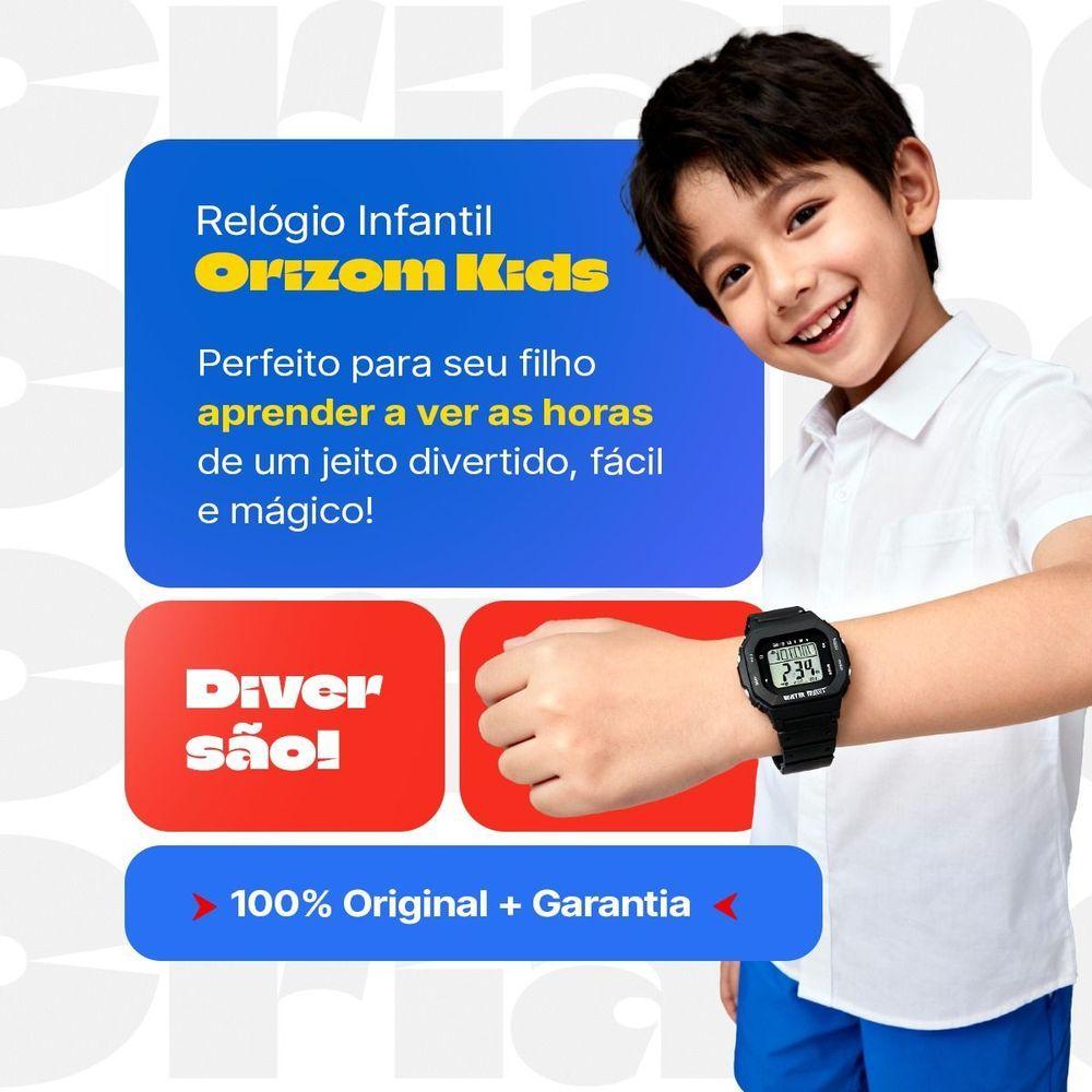 Relogio Infantil Digital Led Preto + Caixa Protecao Uv Silicone Acetato Pulseira Ajustavel CriancaKit Infantil Orizom Kids: Relógio Digital Quadrado + Relógio Digital Bracelete + Óculos de Sol UV + Caixa Premium para Presente- Conjunto completo para o dia a dia das crianças- Praticidade, conforto e apresentação para presente- Ideal para uso escolar, passeios e para presentearItens Inclusos:- 1 relógio infantil digital Orizom Kids, formato quadrado, maquinário em acetato, pulseira em silicone ajustável- 1 óculos de sol infantil Orizom Kids, preto, armação em acetato, lentes com proteção UV- 1 relógio infantil digital Orizom Kids, formato bracelete, todo preto, pulseira ajustável em silicone- 1 caixa premium para acomodar os relógios e valorizar o presenteEspecificações do Relógio Digital Quadrado:- Marca: Orizom- Mostrador: digital- Material da caixa/maquinário: acetato- Pulseira: silicone, hipoalergênico, ajuste amplo- Indicação de uso: cotidiano infantilEspecificações do Relógio Digital Bracelete:- Marca: Orizom- Mostrador: digital- Cor: preto- Pulseira: silicone ajustável- Indicação de uso: cotidiano infantilEspecificações do Óculos de Sol:- Marca: Orizom- Cor: preto- Armação: acetato- Lentes: proteção UV- Conforto: leve, adequado para uso prolongado ao ar livreCaixa Premium:- Finalidade: organizar e proteger os relógios- Apresentação: ideal para presentearBenefícios do Kit:- Conjunto versátil com dois estilos de relógio- Ajuste confortável com pulseiras em silicone- Caixa premium valoriza o presente e facilita a organizaçãoAproveite agora para adquirir este completo Kit Infantil Orizom Kids e surpreender as crianças!