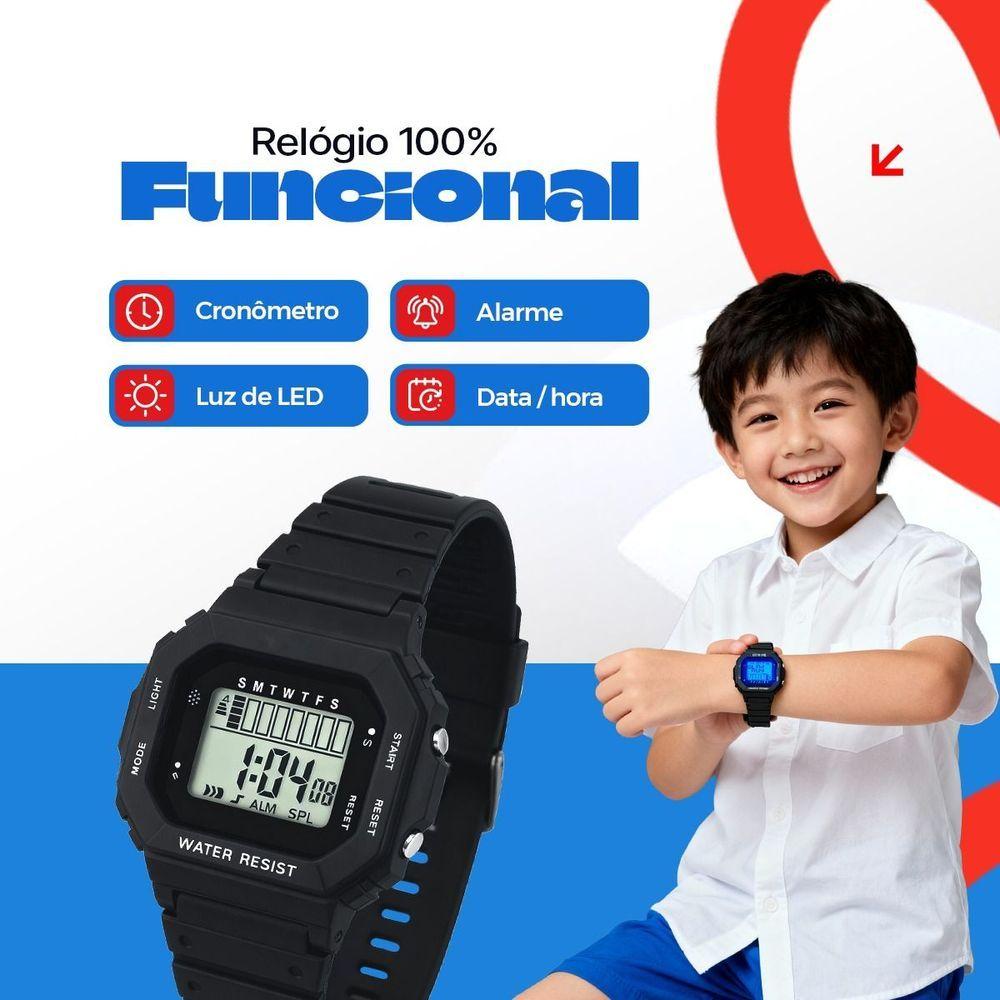 Relogio Infantil Digital Led Preto + Caixa Protecao Uv Silicone Acetato Pulseira Ajustavel Crianca