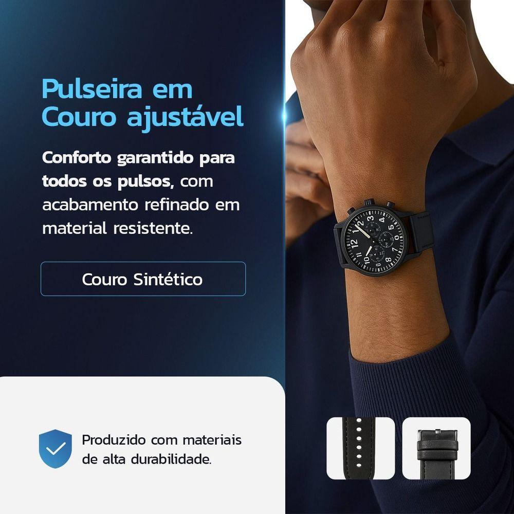 Relogio Premium Preto Aco Inoxidavel Masculino Original Grande Casual Robusto Presente SocialRelógio Masculino Orizom Spaceman Analógico Preto com Pulseira SintéticaEstilo e robustez para o dia a dia. O Relógio Masculino Orizom Spaceman une design moderno todo preto com maquinário em aço inox e pulseira em material sintético que remete ao couro, entregando conforto, visual marcante e confiabilidade para uso social e casual. A tampa blindada com detalhes de originalidade reforça a autenticidade da peça, tornando-o uma ótima opção para presentear amigos, namorado, pai e pessoas especiais.ESPECIFICAÇÕES TÉCNICAS- Marca: Orizom- Modelo: Spaceman- Gênero: masculino- Tipo de mostrador: analógico (ponteiros)- Formato da caixa: redondo- Material da caixa/maquinário: aço inox- Cor do relógio: todo preto- Pulseira: material sintético (aspecto de couro), leve e confortável- Fecho: fivela tradicional com ajuste de furos- Tampa: blindada com detalhes de originalidade- Estilo de uso: social e casual- Tamanho: ajustável ao pulso (medidas padrão masculinas)DESTAQUES- Design todo preto discreto e elegante- Maquinário em aço inox para maior resistência- Pulseira sintética com toque semelhante ao couro- Tampa blindada com marcações de originalidade- Versátil para combinar com diferentes looks sociais e casuaisINDICAÇÕES DE USO- Exclusivo para uso social e casual- Indicação de presente para amigo, namorado, pai e datas comemorativasRECOMENDAÇÕES DE CUIDADOS- Evitar impactos, quedas e exposição a temperaturas extremas- Limpar a caixa com pano macio e seco- Para a pulseira, utilizar pano levemente umedecido; secar bem antes de guardar- Armazenar em local seco, de preferência na caixa quando não estiver em usoAVISO IMPORTANTEO relógio não possui sistema de vedação. Não é à prova dágua e não foi desenvolvido para uso aquático. Produto destinado ao uso diário, casual e convencional, não indicado para banho, piscina, praia ou práticas de esportes aquáticos.CONTEÚDO DA EMBALAGEM- 1 relógio masculino Orizom Spaceman analógico todo preto- 1 embalagem de proteção