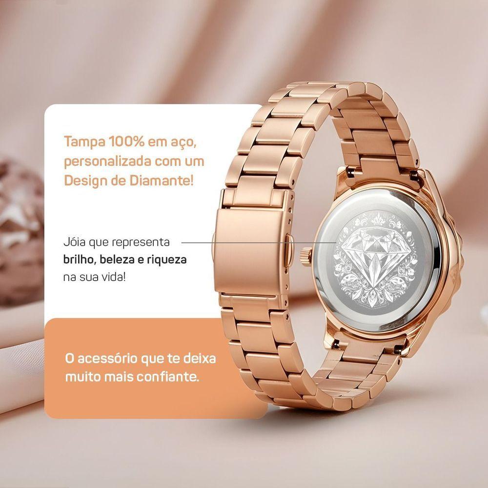 Relogio Aco Banhado Feminino Rose + Pulseira Oculos Inoxidavel Moda Qualidade Premium Losango Preto
