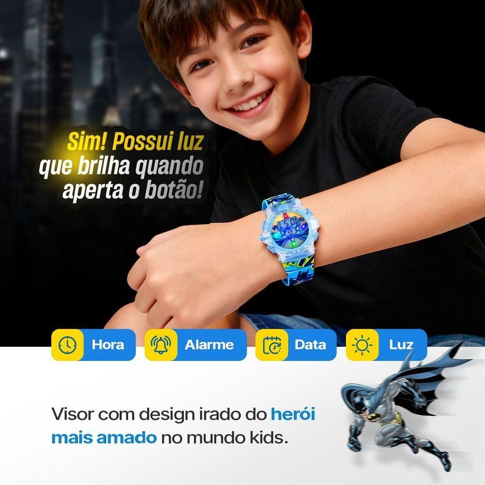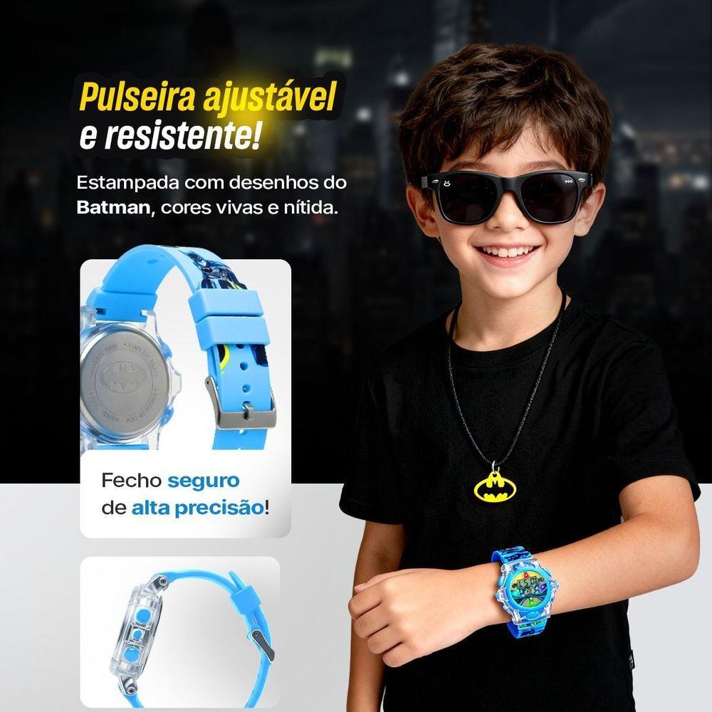 Relogio Infantil Digital Menino Azul Ajustavel Luz Heroi Qualidade Premium Criança Esportivo VerãoAproveite o Kit Infantil Orizom Kids Tematico: Relogio Digital + Colar com Pingente + Oculos de Sol Esportivo UV + Caixa Premium + Relogio Bracelete Bonus e equipe seu pequeno heroi para o dia a dia! Este kit reune um relogio digital infantil com tematica do Batman, um colar emborrachado com pingente combinando, um oculos de sol esportivo com protecao UV e uma caixa premium para guardar e presentear. E tem mais, ao comprar este kit voce leva tambem um relogio digital em formato de bracelete, todo tematico para combinar com o conjunto. Ideal para uso diario, passeios, escola e para presentear. Não perca essa oportunidade, adquira ja o seu kit Orizom Kids e proporcione momentos especiais para a criançada!Itens inclusos:1 relogio digital infantil Orizom Kids, formato redondo, maquinario em acetato, todo azul (podendo ir preto), pulseira em silicone ajustavel para qualquer tamanho de pulso infantil, tematica do Batman, tampa blindada com detalhes de originalidade1 colar infantil emborrachado com pingente do tema do relogio1 oculos de sol infantil Orizom Kids, formato esportivo, todo preto, armacao em acetato, lentes pretas com protecao UV1 caixa premium para acomodar o relogio e os acessoriosBonus: 1 relogio digital em formato de bracelete, todo tematico para combinar com o kitGaranta o melhor para o seu pequeno heroi com este kit completo da Orizom Kids! Aproveite!