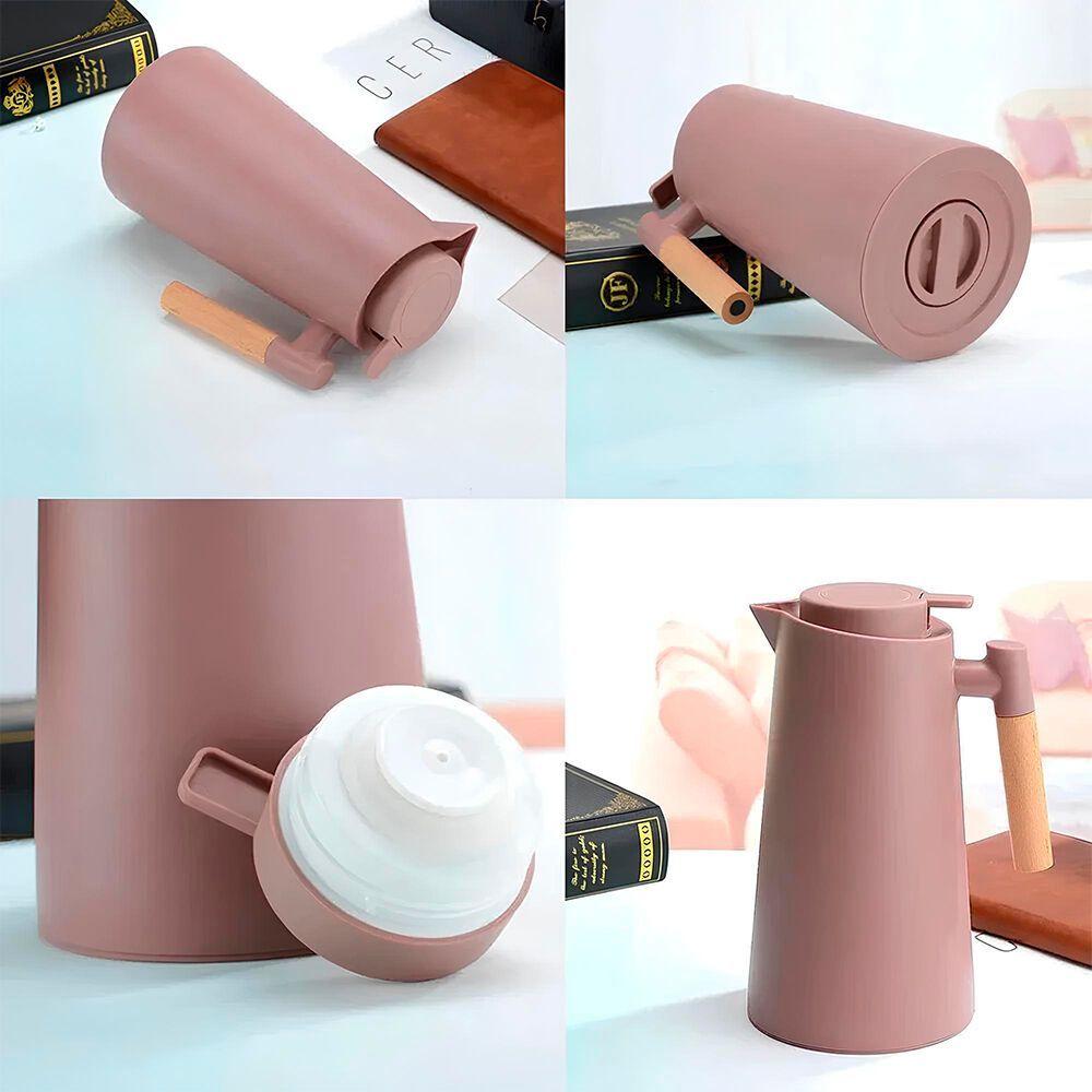 Bule Térmico Elegante De 1 Litro Com Ampola De Vidro E Prática Alça De Madeira