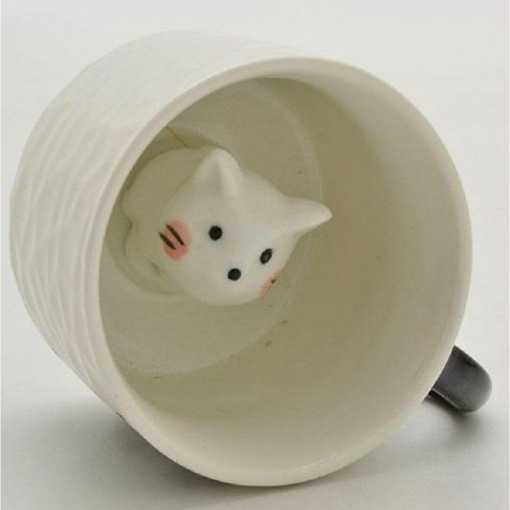 Xícara Fofura Felina 220ml - Café Ou Chá Com Gato Branco, Charme E Estilo!