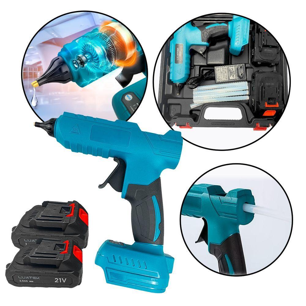 Pistola De Cola Quente Luatek + 6 BastõesA Pistola de Cola Quente 21V foi desenvolvida para oferecer máxima mobilidade, potência e em trabalhos de artesanato, bricolagem, reparos domésticos e . Sem fio e com bateria de lítio de alta capacidade, proporciona autonomia de até 3 horas por carga, ideal para longas sessões de trabalho. Seu design robusto com bico emborrachado e empunhadura ergonômica garante maior controle e conforto. Possui aquecimento rápido, sem gotejamento e é com bastões de cola de 11 mm. Acompanha maleta para e 6 bastões inclusos, pronta para uso imediato.Informações Técnicas:Tensão da bateria: 21V Autonomia: 2 a 3 horas Bivolt: (100-240V) com carregador incluso com bastões de cola de 11 mm Aquecimento rápido e sistema anti-gotejamento Bico com proteção emborrachada Empunhadura ergonômicaItens Inclusos:1x Pistola de Cola Quente 2x Baterias 21V de Lítio 6x Bastões de Cola Quente (11 mm) 1x Carregador Bivolt (110V/220V) 1x Maleta para 1x Manual