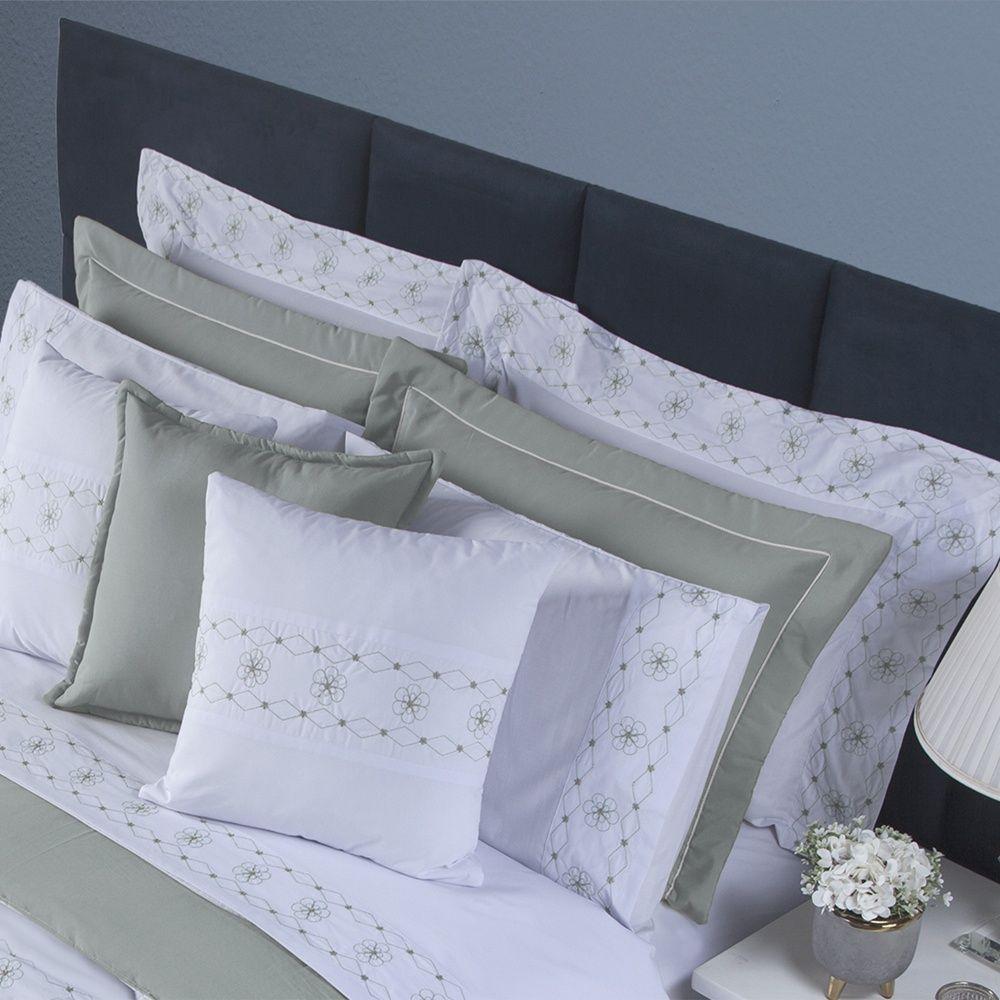 Edredom + Jogo De Cama 200 Fios Damasco Queen 15 Peças 100% Poliéster - Branco/cinzaTransforme seu quarto em um refúgio de elegância com o Kit Cama Completa Damasco. Este conjunto une o requinte do edredom bordado com a sensação de dormir nas nuvens do jogo de lençol. Confeccionado em tecido micropercal 200 fios, todo o kit se destaca pelo seu delicado trabalho bordado, que adiciona um toque de sofisticação e requinte à decoração. O toque extremamente macio e sedoso proporciona noites de sono mais aconchegantes.Por que o Kit Damasco é a escolha perfeita?Elegância Coordenada: O bordado sofisticado está presente no edredom, nos porta travesseiros, na vira do lençol de cima e nas fronhas, criando um visual harmonioso e requintado.Kit Cama Ultra Completo (15 Peças): Uma solução definitiva que veste sua cama da base ao topo, incluindo edredom, jogo de cama completo e um conjunto de almofadas decorativas com refil.Toque Premium: Todo o conjunto é feito em micropercal 200 fios, garantindo uma sensação de toque suave, macio e sedoso.Composição Múltipla para Travesseiros: O kit é rico em detalhes, contando com 02 porta travesseiros bordados, 02 porta travesseiros lisos e 02 fronhas bordadas, permitindo uma cama cheia e luxuosa.Ajuste Perfeito: O lençol de baixo possui elástico e é compatível com colchões de até 35cm de altura, garantindo que fique sempre no lugar.Produto composto por (Total 15 Peças):Do Kit Edredom (11 Peças):01 Edredom 2,60m x 2,50m02 Porta Travesseiros Bordados 70cm x 50cm02 Porta Travesseiros Lisos 70cm x 50cm02 Capas de Almofadas Bordadas 45cm x 45cm01 Capa de Almofada Lisa 45cm x 45cm03 Refis de Almofadas 45cm x 45cmDo Jogo de Cama (04 Peças):01 Lençol de Cima 2,60m x 2,40m01 Lençol de Baixo com elástico para colchão de 1,98m x 1,58m x 35cm alt.02 Fronhas 70cm x 50cmComposição:Tecido (Todas as peças): 100% poliéster micropercal 200 fiosEnchimento (Edredom, Porta Travesseiros e Refis de Almofadas): 100% poliésterAtenção: As cores do produto podem apresentar pequenas variações de acordo com as configurações da tela do seu dispositivo.
