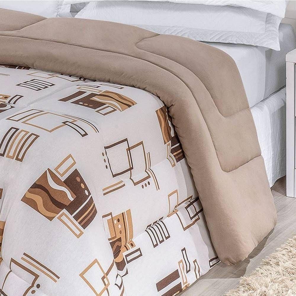 Edredom 2,40 X 2,20m + Jogo De Cama Malha Quality Queen 05 Peças 100% Algodão - Avelã