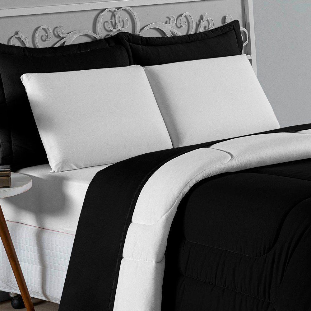 Kit Edredom Dupla Face + Jogo De Lençol Casal Nobre 6 Peças Malha 100% Algodão - Preto / BrancoTransforme seu quarto em um ambiente de descanso luxuoso com o Kit Cama Completa Casal Nobre 6 Peças. A união perfeita entre a praticidade do dia a dia e o conforto superior da malha 100% algodão fio penteado.Por que este Kit é uma ótima escolha?- Toque Extremamente Macio: A confecção em Malha 100% Algodão Fio 30/1 Penteado proporciona uma sensação suave e natural, ideal para quem valoriza o conforto da pele.- Visual Sofisticado: O edredom dupla face e os dois porta travesseiros matelados conferem volume e elegância à cama, dispensando composições difíceis.- Durabilidade Superior: O fio penteado garante um tecido resistente, que mantém a aparência de novo e não forma bolinhas (anti-pilling).- Ajuste Perfeito: O lençol de baixo com elástico abraça colchões de até 30cm de altura, mantendo a cama sempre organizada.Produto composto por (Total 06 Peças):Do Kit Edredom (03 Peças):01 Edredom Casal Dupla Face: 2,00m x 2,20m02 Porta Travesseiros Matelados: 50cm x 70cmDo Jogo de Lençol (03 Peças):01 Lençol de Baixo com Elástico: 1,38m x 1,98m x 30cm02 Fronhas: 70cm x 50cmAtenção: Este kit é composto pelo jogo de cama essencial (lençol com elástico e fronhas) e não inclui o lençol de cima (sobre lençol).Composição:Tecido (Todas as peças): Malha 100% Algodão - Fio 30/1 PenteadoEnchimento (Edredom e Porta Travesseiros): 100% Poliéster (Edredom com fibra siliconada)Forro (Apenas Porta Travesseiros): 100% Polipropileno