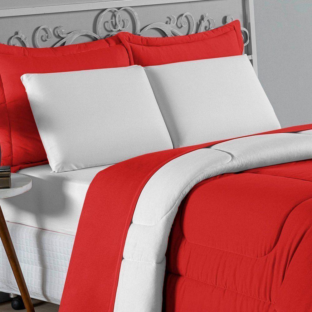 Kit Edredom Dupla Face + Jogo De Lençol Casal Nobre 6 Peças Malha 100% Algodão - Vermelho / BrancoTransforme seu quarto em um ambiente de descanso luxuoso com o Kit Cama Completa Casal Nobre 6 Peças. A união perfeita entre a praticidade do dia a dia e o conforto superior da malha 100% algodão fio penteado.Por que este Kit é uma ótima escolha?- Toque Extremamente Macio: A confecção em Malha 100% Algodão Fio 30/1 Penteado proporciona uma sensação suave e natural, ideal para quem valoriza o conforto da pele.- Visual Sofisticado: O edredom dupla face e os dois porta travesseiros matelados conferem volume e elegância à cama, dispensando composições difíceis.- Durabilidade Superior: O fio penteado garante um tecido resistente, que mantém a aparência de novo e não forma bolinhas (anti-pilling).- Ajuste Perfeito: O lençol de baixo com elástico abraça colchões de até 30cm de altura, mantendo a cama sempre organizada.Produto composto por (Total 06 Peças):Do Kit Edredom (03 Peças):01 Edredom Casal Dupla Face: 2,00m x 2,20m02 Porta Travesseiros Matelados: 50cm x 70cmDo Jogo de Lençol (03 Peças):01 Lençol de Baixo com Elástico: 1,38m x 1,98m x 30cm02 Fronhas: 70cm x 50cmAtenção: Este kit é composto pelo jogo de cama essencial (lençol com elástico e fronhas) e não inclui o lençol de cima (sobre lençol).Composição:Tecido (Todas as peças): Malha 100% Algodão - Fio 30/1 PenteadoEnchimento (Edredom e Porta Travesseiros): 100% Poliéster (Edredom com fibra siliconada)Forro (Apenas Porta Travesseiros): 100% Polipropileno