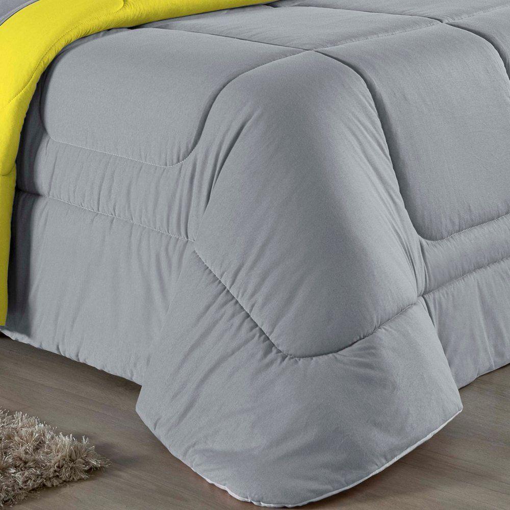 Kit Edredom Dupla Face + Jogo De Lençol Casal Nobre 6 Peças Malha 100% Algodão - Cinza / AmareloTransforme seu quarto em um ambiente de descanso luxuoso com o Kit Cama Completa Casal Nobre 6 Peças. A união perfeita entre a praticidade do dia a dia e o conforto superior da malha 100% algodão fio penteado.Por que este Kit é uma ótima escolha?- Toque Extremamente Macio: A confecção em Malha 100% Algodão Fio 30/1 Penteado proporciona uma sensação suave e natural, ideal para quem valoriza o conforto da pele.- Visual Sofisticado: O edredom dupla face e os dois porta travesseiros matelados conferem volume e elegância à cama, dispensando composições difíceis.- Durabilidade Superior: O fio penteado garante um tecido resistente, que mantém a aparência de novo e não forma bolinhas (anti-pilling).- Ajuste Perfeito: O lençol de baixo com elástico abraça colchões de até 30cm de altura, mantendo a cama sempre organizada.Produto composto por (Total 06 Peças):Do Kit Edredom (03 Peças):01 Edredom Casal Dupla Face: 2,00m x 2,20m02 Porta Travesseiros Matelados: 50cm x 70cmDo Jogo de Lençol (03 Peças):01 Lençol de Baixo com Elástico: 1,38m x 1,98m x 30cm02 Fronhas: 70cm x 50cmAtenção: Este kit é composto pelo jogo de cama essencial (lençol com elástico e fronhas) e não inclui o lençol de cima (sobre lençol).Composição:Tecido (Todas as peças): Malha 100% Algodão - Fio 30/1 PenteadoEnchimento (Edredom e Porta Travesseiros): 100% Poliéster (Edredom com fibra siliconada)Forro (Apenas Porta Travesseiros): 100% Polipropileno