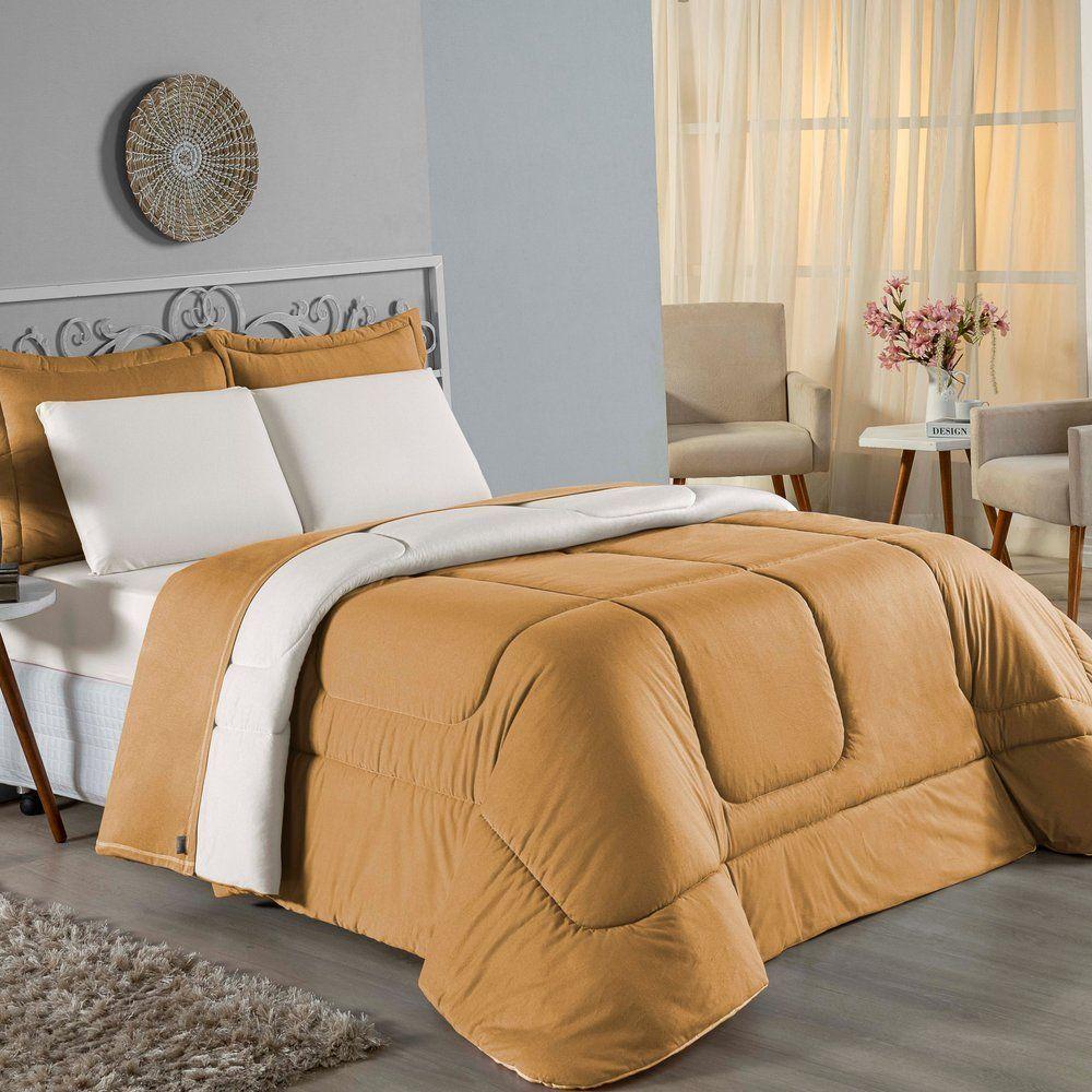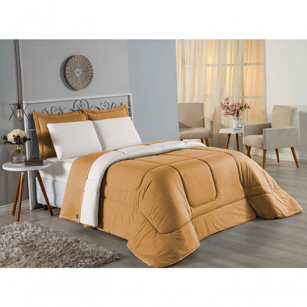 Kit Edredom Dupla Face + Jogo De Lençol Casal Nobre 6 Peças Malha 100% Algodão - Cobre / PalhaTransforme seu quarto em um ambiente de descanso luxuoso com o Kit Cama Completa Casal Nobre 6 Peças. A união perfeita entre a praticidade do dia a dia e o conforto superior da malha 100% algodão fio penteado.Por que este Kit é uma ótima escolha?- Toque Extremamente Macio: A confecção em Malha 100% Algodão Fio 30/1 Penteado proporciona uma sensação suave e natural, ideal para quem valoriza o conforto da pele.- Visual Sofisticado: O edredom dupla face e os dois porta travesseiros matelados conferem volume e elegância à cama, dispensando composições difíceis.- Durabilidade Superior: O fio penteado garante um tecido resistente, que mantém a aparência de novo e não forma bolinhas (anti-pilling).- Ajuste Perfeito: O lençol de baixo com elástico abraça colchões de até 30cm de altura, mantendo a cama sempre organizada.Produto composto por (Total 06 Peças):Do Kit Edredom (03 Peças):01 Edredom Casal Dupla Face: 2,00m x 2,20m02 Porta Travesseiros Matelados: 50cm x 70cmDo Jogo de Lençol (03 Peças):01 Lençol de Baixo com Elástico: 1,38m x 1,98m x 30cm02 Fronhas: 70cm x 50cmAtenção: Este kit é composto pelo jogo de cama essencial (lençol com elástico e fronhas) e não inclui o lençol de cima (sobre lençol).Composição:Tecido (Todas as peças): Malha 100% Algodão - Fio 30/1 PenteadoEnchimento (Edredom e Porta Travesseiros): 100% Poliéster (Edredom com fibra siliconada)Forro (Apenas Porta Travesseiros): 100% Polipropileno