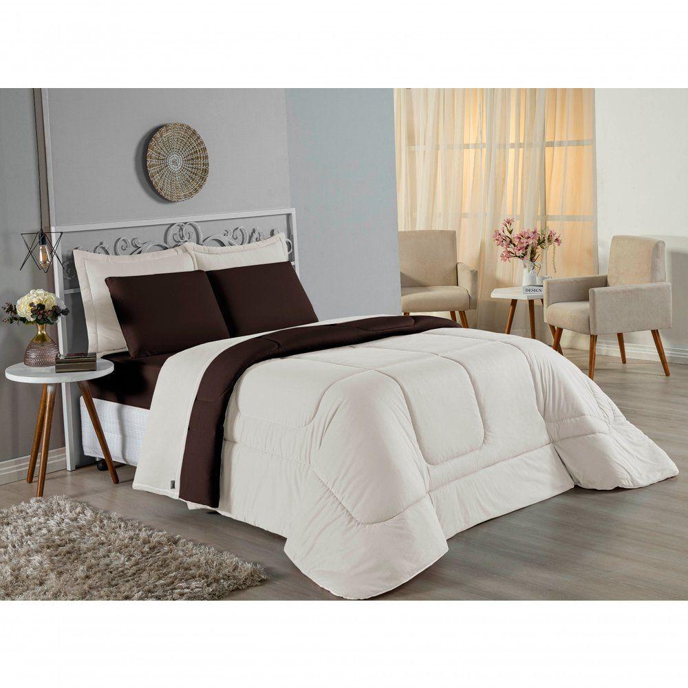 Kit Edredom Dupla Face + Jogo De Lençol Casal Nobre 6 Peças Malha 100% Algodão - Palha / MarromTransforme seu quarto em um ambiente de descanso luxuoso com o Kit Cama Completa Casal Nobre 6 Peças. A união perfeita entre a praticidade do dia a dia e o conforto superior da malha 100% algodão fio penteado.Por que este Kit é uma ótima escolha?- Toque Extremamente Macio: A confecção em Malha 100% Algodão Fio 30/1 Penteado proporciona uma sensação suave e natural, ideal para quem valoriza o conforto da pele.- Visual Sofisticado: O edredom dupla face e os dois porta travesseiros matelados conferem volume e elegância à cama, dispensando composições difíceis.- Durabilidade Superior: O fio penteado garante um tecido resistente, que mantém a aparência de novo e não forma bolinhas (anti-pilling).- Ajuste Perfeito: O lençol de baixo com elástico abraça colchões de até 30cm de altura, mantendo a cama sempre organizada.Produto composto por (Total 06 Peças):Do Kit Edredom (03 Peças):01 Edredom Casal Dupla Face: 2,00m x 2,20m02 Porta Travesseiros Matelados: 50cm x 70cmDo Jogo de Lençol (03 Peças):01 Lençol de Baixo com Elástico: 1,38m x 1,98m x 30cm02 Fronhas: 70cm x 50cmAtenção: Este kit é composto pelo jogo de cama essencial (lençol com elástico e fronhas) e não inclui o lençol de cima (sobre lençol).Composição:Tecido (Todas as peças): Malha 100% Algodão - Fio 30/1 PenteadoEnchimento (Edredom e Porta Travesseiros): 100% Poliéster (Edredom com fibra siliconada)Forro (Apenas Porta Travesseiros): 100% Polipropileno
