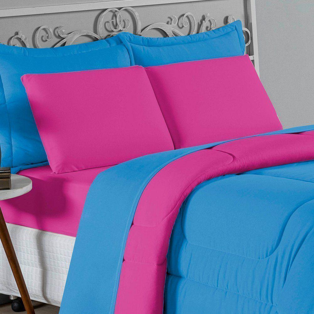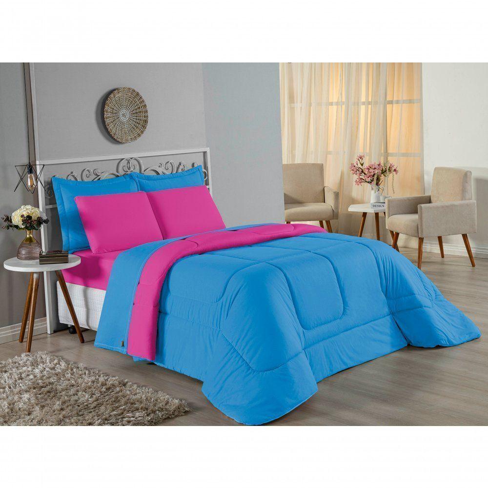 Kit Edredom Dupla Face + Jogo De Lençol Casal Nobre 6 Peças Malha 100% Algodão - Turquesa / PinkTransforme seu quarto em um ambiente de descanso luxuoso com o Kit Cama Completa Casal Nobre 6 Peças. A união perfeita entre a praticidade do dia a dia e o conforto superior da malha 100% algodão fio penteado.Por que este Kit é uma ótima escolha?- Toque Extremamente Macio: A confecção em Malha 100% Algodão Fio 30/1 Penteado proporciona uma sensação suave e natural, ideal para quem valoriza o conforto da pele.- Visual Sofisticado: O edredom dupla face e os dois porta travesseiros matelados conferem volume e elegância à cama, dispensando composições difíceis.- Durabilidade Superior: O fio penteado garante um tecido resistente, que mantém a aparência de novo e não forma bolinhas (anti-pilling).- Ajuste Perfeito: O lençol de baixo com elástico abraça colchões de até 30cm de altura, mantendo a cama sempre organizada.Produto composto por (Total 06 Peças):Do Kit Edredom (03 Peças):01 Edredom Casal Dupla Face: 2,00m x 2,20m02 Porta Travesseiros Matelados: 50cm x 70cmDo Jogo de Lençol (03 Peças):01 Lençol de Baixo com Elástico: 1,38m x 1,98m x 30cm02 Fronhas: 70cm x 50cmAtenção: Este kit é composto pelo jogo de cama essencial (lençol com elástico e fronhas) e não inclui o lençol de cima (sobre lençol).Composição:Tecido (Todas as peças): Malha 100% Algodão - Fio 30/1 PenteadoEnchimento (Edredom e Porta Travesseiros): 100% Poliéster (Edredom com fibra siliconada)Forro (Apenas Porta Travesseiros): 100% Polipropileno