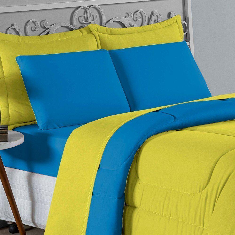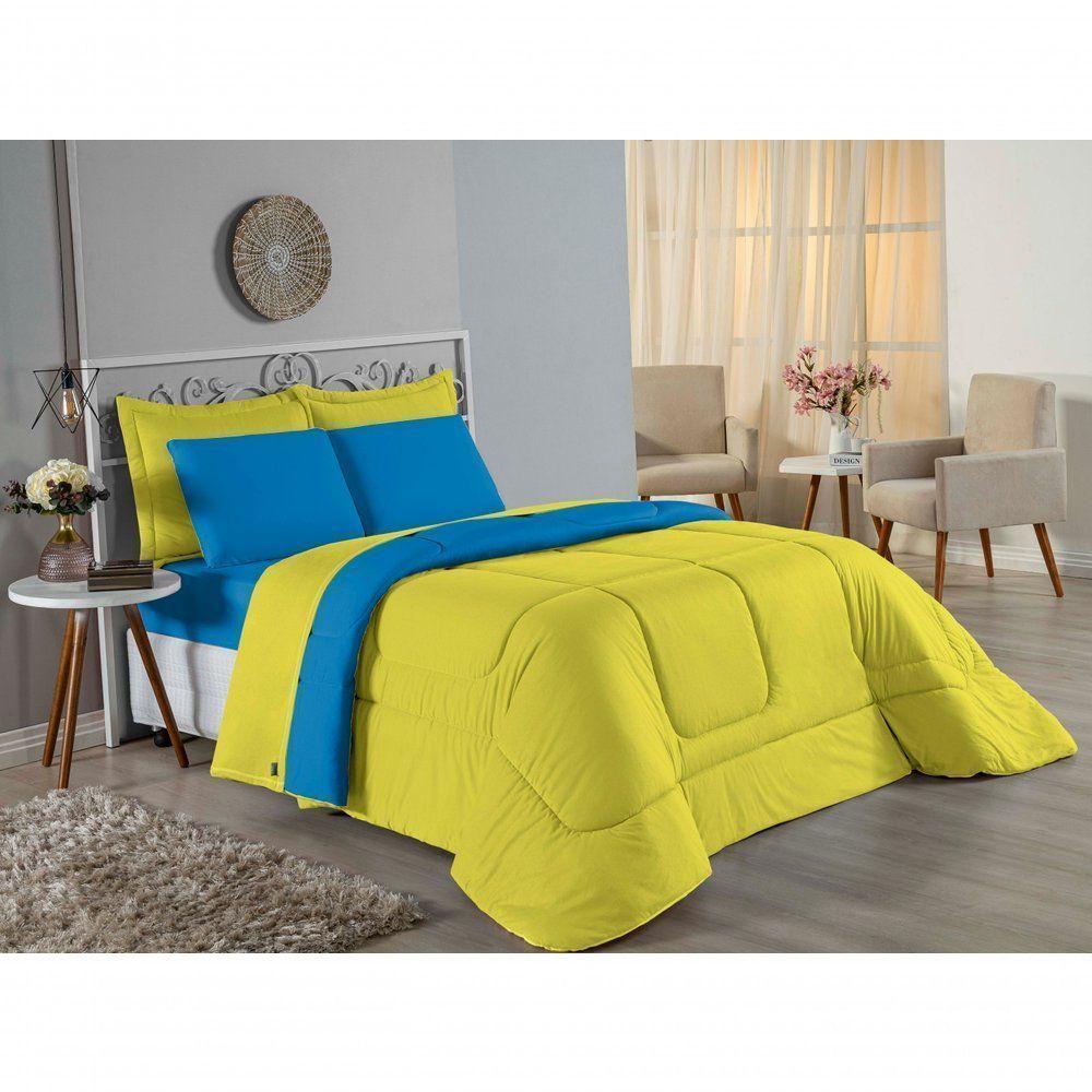 Kit Edredom Dupla Face + Jogo De Lençol Casal Nobre 7 Peças Malha 100% Algodão - Amarelo / TurquesaVista sua cama com elegância total e conforto absoluto com o Kit Cama Completa Casal Nobre 7 Peças. A solução definitiva para quem busca um enxoval completo, coordenado e com a maciez irresistível da malha de algodão.Por que este Kit é uma ótima escolha?- Jogo Completo 7 Peças: Inclui edredom, porta travesseiros decorativos e o jogo de cama completo (com lençol de cima e de baixo), oferecendo a experiência completa de conforto.- Malha Premium: Confeccionado em 100% Algodão Fio 30/1 Penteado, garantindo um toque suave, natural e livre de bolinhas.- Versatilidade na Decoração: O edredom dupla face permite variar o visual, enquanto o lençol de cima com vira adiciona charme à cama posta.- Aconchego e Praticidade: Une o aquecimento do edredom à facilidade do lençol com elástico, perfeito para o dia a dia.Produto composto por (Total 07 Peças):Do Kit Edredom (03 Peças):01 Edredom Casal Dupla Face: 2,00m x 2,20m02 Porta Travesseiros Matelados: 50cm x 70cmDo Jogo de Lençol (04 Peças):01 Lençol de Cima (Virol): 2,40m x 2,20m01 Lençol de Baixo com Elástico: 1,38m x 1,98m x 30cm02 Fronhas: 70cm x 50cmComposição:Tecido (Todas as peças): Malha 100% Algodão - Fio 30/1 PenteadoEnchimento (Edredom e Porta Travesseiros): 100% Poliéster (Edredom com fibra siliconada)Forro (Apenas Porta Travesseiros): 100% Polipropileno