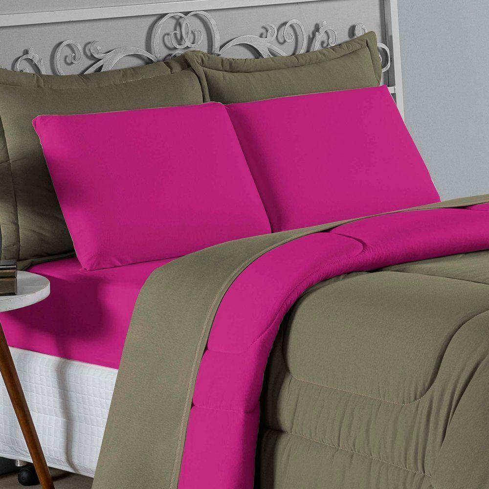 Kit Edredom Dupla Face + Jogo De Lençol Casal Nobre 7 Peças Malha 100% Algodão - Avelã / PinkVista sua cama com elegância total e conforto absoluto com o Kit Cama Completa Casal Nobre 7 Peças. A solução definitiva para quem busca um enxoval completo, coordenado e com a maciez irresistível da malha de algodão.Por que este Kit é uma ótima escolha?- Jogo Completo 7 Peças: Inclui edredom, porta travesseiros decorativos e o jogo de cama completo (com lençol de cima e de baixo), oferecendo a experiência completa de conforto.- Malha Premium: Confeccionado em 100% Algodão Fio 30/1 Penteado, garantindo um toque suave, natural e livre de bolinhas.- Versatilidade na Decoração: O edredom dupla face permite variar o visual, enquanto o lençol de cima com vira adiciona charme à cama posta.- Aconchego e Praticidade: Une o aquecimento do edredom à facilidade do lençol com elástico, perfeito para o dia a dia.Produto composto por (Total 07 Peças):Do Kit Edredom (03 Peças):01 Edredom Casal Dupla Face: 2,00m x 2,20m02 Porta Travesseiros Matelados: 50cm x 70cmDo Jogo de Lençol (04 Peças):01 Lençol de Cima (Virol): 2,40m x 2,20m01 Lençol de Baixo com Elástico: 1,38m x 1,98m x 30cm02 Fronhas: 70cm x 50cmComposição:Tecido (Todas as peças): Malha 100% Algodão - Fio 30/1 PenteadoEnchimento (Edredom e Porta Travesseiros): 100% Poliéster (Edredom com fibra siliconada)Forro (Apenas Porta Travesseiros): 100% Polipropileno