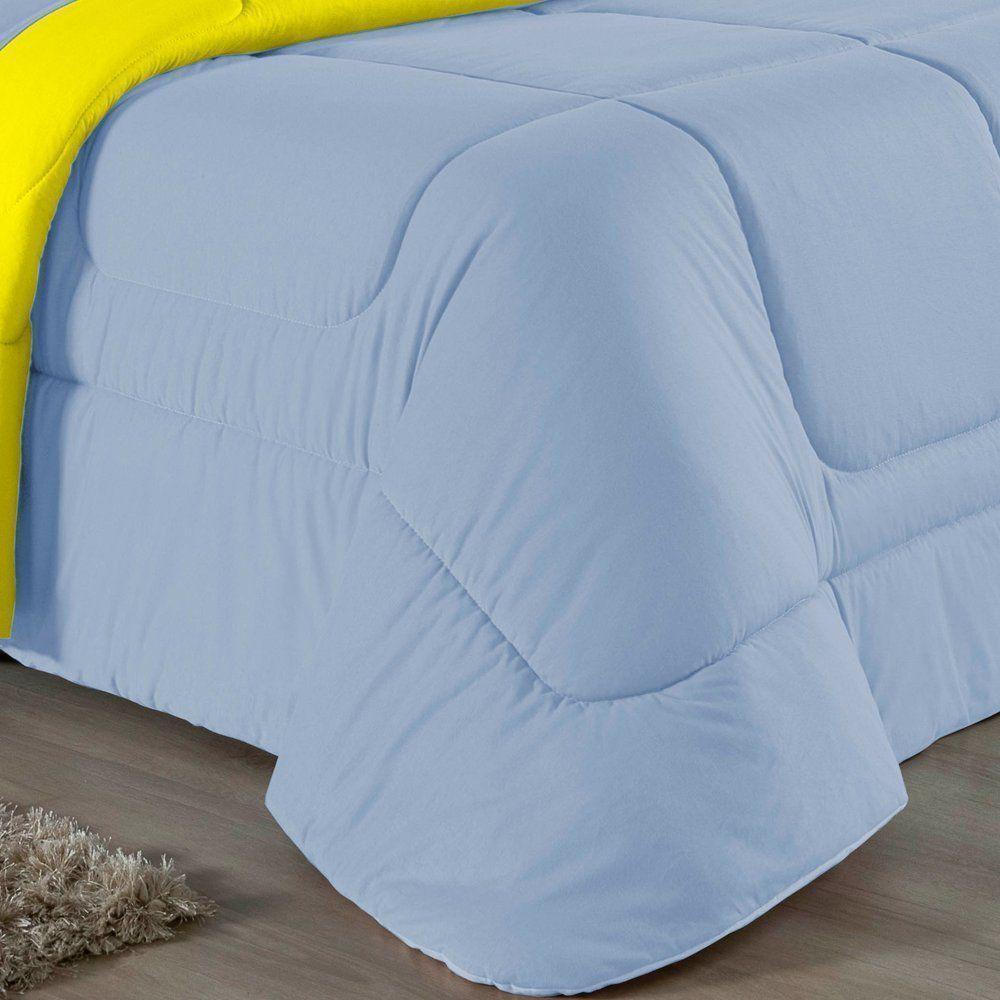 Kit Edredom Dupla Face + Jogo De Lençol Casal Nobre 7 Peças Malha 100% Algodão - Azul-bebê / Amarelo