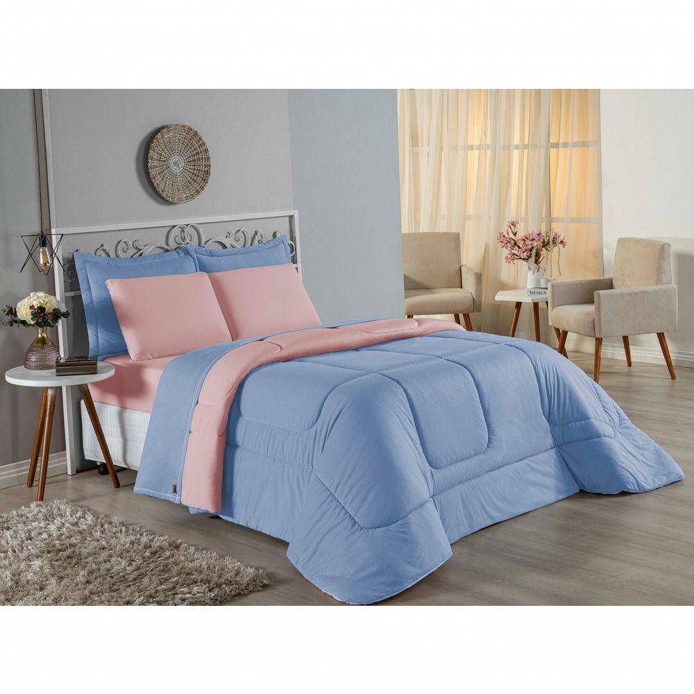 Kit Edredom Dupla Face + Jogo De Lençol Casal Nobre 7 Peças Malha 100% Algodão - Azul-bebê / Rosa-bebêVista sua cama com elegância total e conforto absoluto com o Kit Cama Completa Casal Nobre 7 Peças. A solução definitiva para quem busca um enxoval completo, coordenado e com a maciez irresistível da malha de algodão.Por que este Kit é uma ótima escolha?- Jogo Completo 7 Peças: Inclui edredom, porta travesseiros decorativos e o jogo de cama completo (com lençol de cima e de baixo), oferecendo a experiência completa de conforto.- Malha Premium: Confeccionado em 100% Algodão Fio 30/1 Penteado, garantindo um toque suave, natural e livre de bolinhas.- Versatilidade na Decoração: O edredom dupla face permite variar o visual, enquanto o lençol de cima com vira adiciona charme à cama posta.- Aconchego e Praticidade: Une o aquecimento do edredom à facilidade do lençol com elástico, perfeito para o dia a dia.Produto composto por (Total 07 Peças):Do Kit Edredom (03 Peças):01 Edredom Casal Dupla Face: 2,00m x 2,20m02 Porta Travesseiros Matelados: 50cm x 70cmDo Jogo de Lençol (04 Peças):01 Lençol de Cima (Virol): 2,40m x 2,20m01 Lençol de Baixo com Elástico: 1,38m x 1,98m x 30cm02 Fronhas: 70cm x 50cmComposição:Tecido (Todas as peças): Malha 100% Algodão - Fio 30/1 PenteadoEnchimento (Edredom e Porta Travesseiros): 100% Poliéster (Edredom com fibra siliconada)Forro (Apenas Porta Travesseiros): 100% Polipropileno