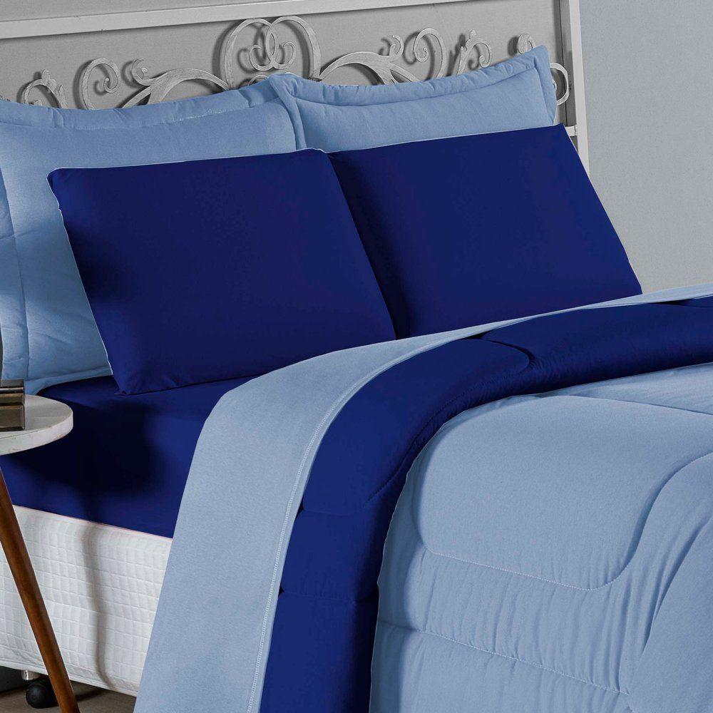 Kit Edredom Dupla Face + Jogo De Lençol Casal Nobre 7 Peças Malha 100% Algodão - Azul-bebê / RoyalVista sua cama com elegância total e conforto absoluto com o Kit Cama Completa Casal Nobre 7 Peças. A solução definitiva para quem busca um enxoval completo, coordenado e com a maciez irresistível da malha de algodão.Por que este Kit é uma ótima escolha?- Jogo Completo 7 Peças: Inclui edredom, porta travesseiros decorativos e o jogo de cama completo (com lençol de cima e de baixo), oferecendo a experiência completa de conforto.- Malha Premium: Confeccionado em 100% Algodão Fio 30/1 Penteado, garantindo um toque suave, natural e livre de bolinhas.- Versatilidade na Decoração: O edredom dupla face permite variar o visual, enquanto o lençol de cima com vira adiciona charme à cama posta.- Aconchego e Praticidade: Une o aquecimento do edredom à facilidade do lençol com elástico, perfeito para o dia a dia.Produto composto por (Total 07 Peças):Do Kit Edredom (03 Peças):01 Edredom Casal Dupla Face: 2,00m x 2,20m02 Porta Travesseiros Matelados: 50cm x 70cmDo Jogo de Lençol (04 Peças):01 Lençol de Cima (Virol): 2,40m x 2,20m01 Lençol de Baixo com Elástico: 1,38m x 1,98m x 30cm02 Fronhas: 70cm x 50cmComposição:Tecido (Todas as peças): Malha 100% Algodão - Fio 30/1 PenteadoEnchimento (Edredom e Porta Travesseiros): 100% Poliéster (Edredom com fibra siliconada)Forro (Apenas Porta Travesseiros): 100% Polipropileno