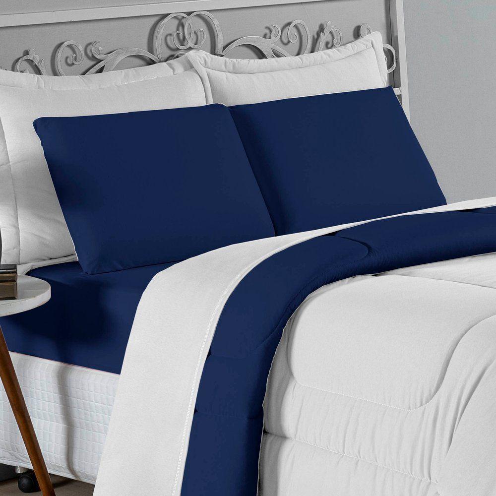 Kit Edredom Dupla Face + Jogo De Lençol Casal Nobre 7 Peças Malha 100% Algodão - Branco / Azul-marinhoVista sua cama com elegância total e conforto absoluto com o Kit Cama Completa Casal Nobre 7 Peças. A solução definitiva para quem busca um enxoval completo, coordenado e com a maciez irresistível da malha de algodão.Por que este Kit é uma ótima escolha?- Jogo Completo 7 Peças: Inclui edredom, porta travesseiros decorativos e o jogo de cama completo (com lençol de cima e de baixo), oferecendo a experiência completa de conforto.- Malha Premium: Confeccionado em 100% Algodão Fio 30/1 Penteado, garantindo um toque suave, natural e livre de bolinhas.- Versatilidade na Decoração: O edredom dupla face permite variar o visual, enquanto o lençol de cima com vira adiciona charme à cama posta.- Aconchego e Praticidade: Une o aquecimento do edredom à facilidade do lençol com elástico, perfeito para o dia a dia.Produto composto por (Total 07 Peças):Do Kit Edredom (03 Peças):01 Edredom Casal Dupla Face: 2,00m x 2,20m02 Porta Travesseiros Matelados: 50cm x 70cmDo Jogo de Lençol (04 Peças):01 Lençol de Cima (Virol): 2,40m x 2,20m01 Lençol de Baixo com Elástico: 1,38m x 1,98m x 30cm02 Fronhas: 70cm x 50cmComposição:Tecido (Todas as peças): Malha 100% Algodão - Fio 30/1 PenteadoEnchimento (Edredom e Porta Travesseiros): 100% Poliéster (Edredom com fibra siliconada)Forro (Apenas Porta Travesseiros): 100% Polipropileno