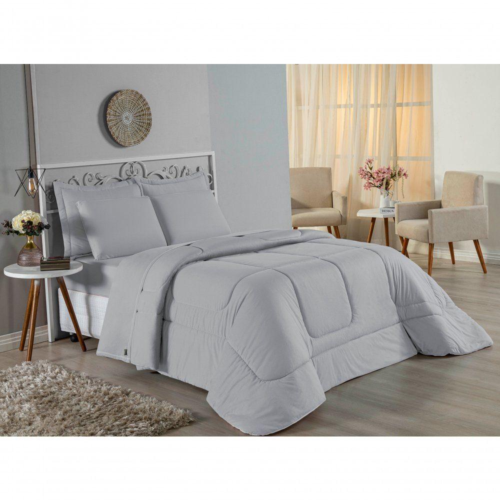 Kit Edredom Dupla Face + Jogo De Lençol Casal Nobre 7 Peças Malha 100% Algodão - CinzaVista sua cama com elegância total e conforto absoluto com o Kit Cama Completa Casal Nobre 7 Peças. A solução definitiva para quem busca um enxoval completo, coordenado e com a maciez irresistível da malha de algodão.Por que este Kit é uma ótima escolha?- Jogo Completo 7 Peças: Inclui edredom, porta travesseiros decorativos e o jogo de cama completo (com lençol de cima e de baixo), oferecendo a experiência completa de conforto.- Malha Premium: Confeccionado em 100% Algodão Fio 30/1 Penteado, garantindo um toque suave, natural e livre de bolinhas.- Versatilidade na Decoração: O edredom dupla face permite variar o visual, enquanto o lençol de cima com vira adiciona charme à cama posta.- Aconchego e Praticidade: Une o aquecimento do edredom à facilidade do lençol com elástico, perfeito para o dia a dia.Produto composto por (Total 07 Peças):Do Kit Edredom (03 Peças):01 Edredom Casal Dupla Face: 2,00m x 2,20m02 Porta Travesseiros Matelados: 50cm x 70cmDo Jogo de Lençol (04 Peças):01 Lençol de Cima (Virol): 2,40m x 2,20m01 Lençol de Baixo com Elástico: 1,38m x 1,98m x 30cm02 Fronhas: 70cm x 50cmComposição:Tecido (Todas as peças): Malha 100% Algodão - Fio 30/1 PenteadoEnchimento (Edredom e Porta Travesseiros): 100% Poliéster (Edredom com fibra siliconada)Forro (Apenas Porta Travesseiros): 100% Polipropileno