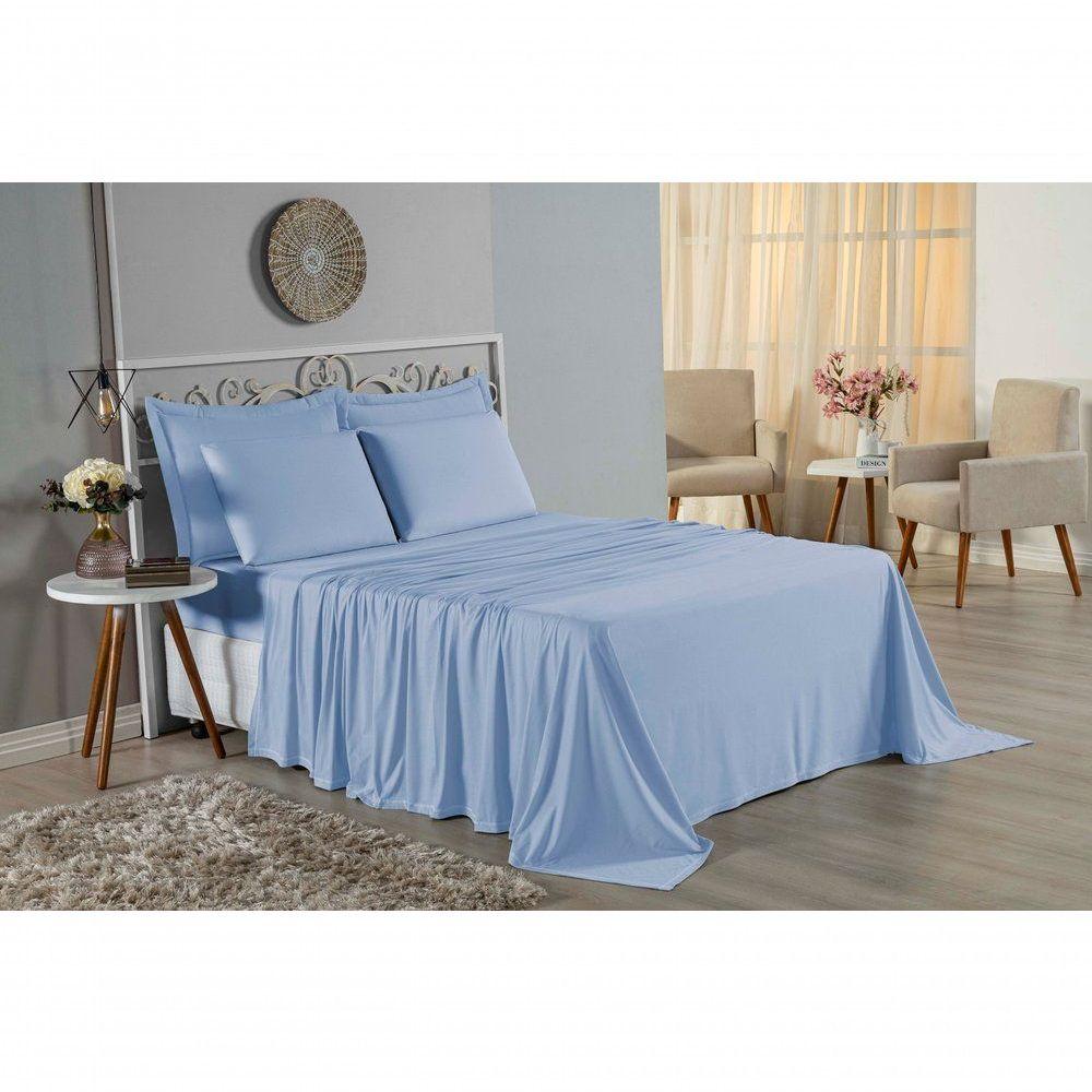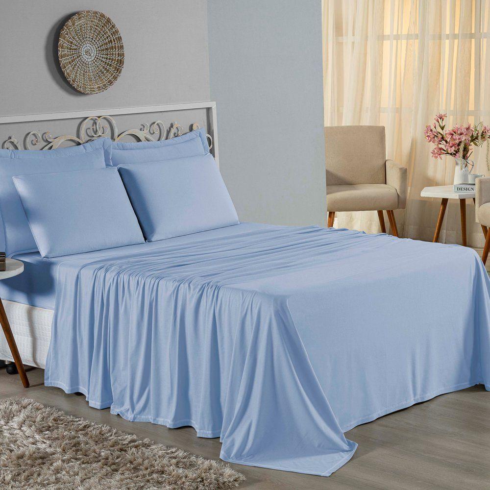 Jogo De Cama King Nobre 4 Peças Lençol Com Elástico De 30cm De Altura Malha 100% Algodão - Azul-bebêComplete a grandiosidade da sua cama com o Jogo de Cama King Nobre 4 Peças. Espaço, conforto e a pureza do algodão reunidos em um enxoval magnífico.Por que este Jogo de Cama é a escolha perfeita?- Máximo Conforto King: Desenvolvido para camas amplas, com um lençol de cima gigante (2,50m x 2,90m) que proporciona cobertura total e caimento impecável.- Puro Algodão: A composição 100% natural oferece um toque sedoso e fresco, essencial para um descanso reparador.- Fixação Ideal: O lençol de baixo abraça colchões King de até 30cm de altura, mantendo a cama sempre organizada.- Jogo Completo: Tudo o que você precisa para vestir a cama com elegância e funcionalidade em um único pacote.Produto composto por (Total 04 Peças):01 Lençol de Cima (Virol): 2,50m x 2,90m01 Lençol de Baixo com Elástico: 1,93m x 2,03m x 30cm02 Fronhas: 70cm x 50cmComposição:Tecido: Malha 100% Algodão - Fio 30/1 Penteado