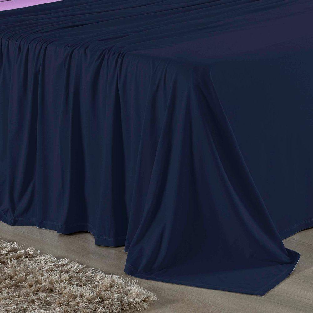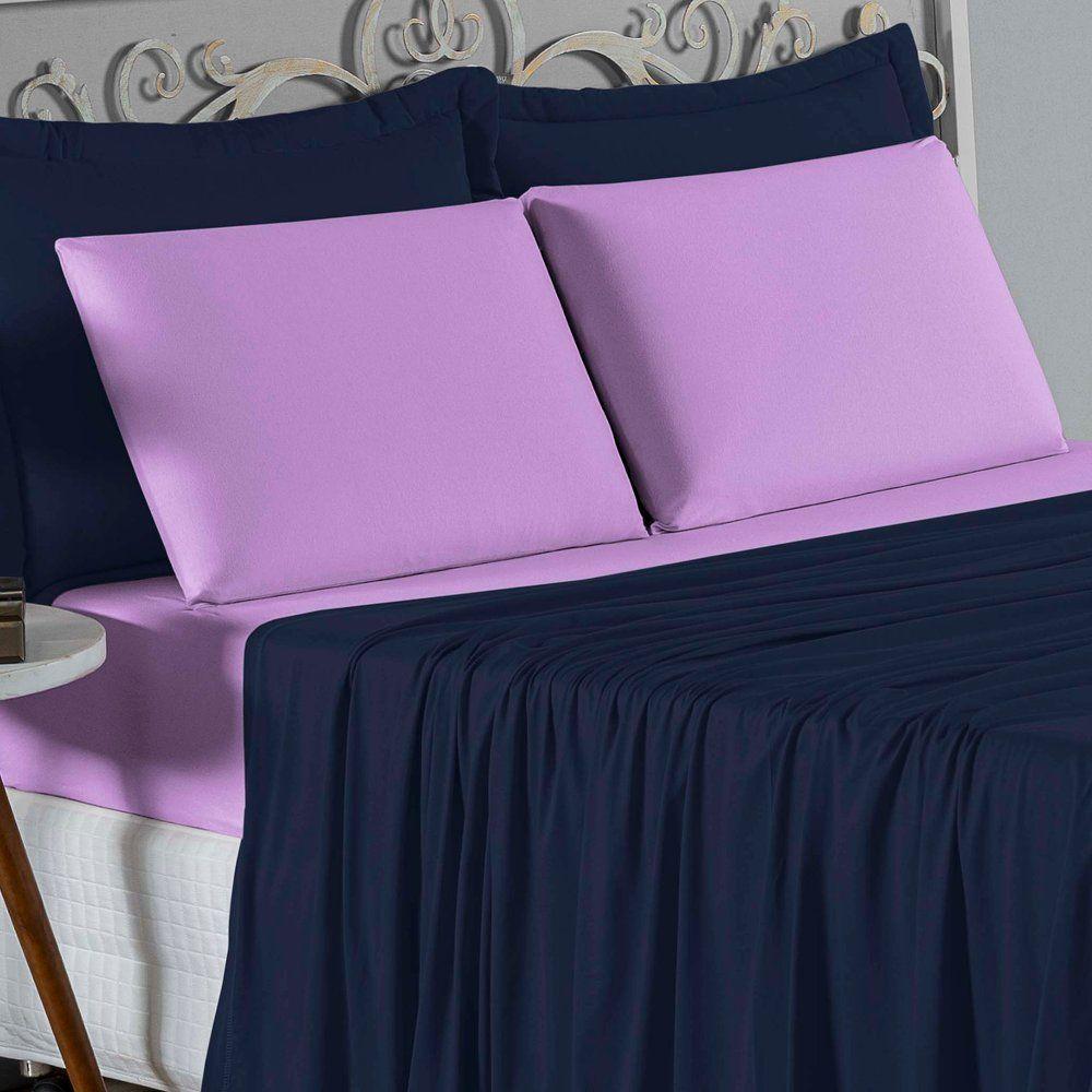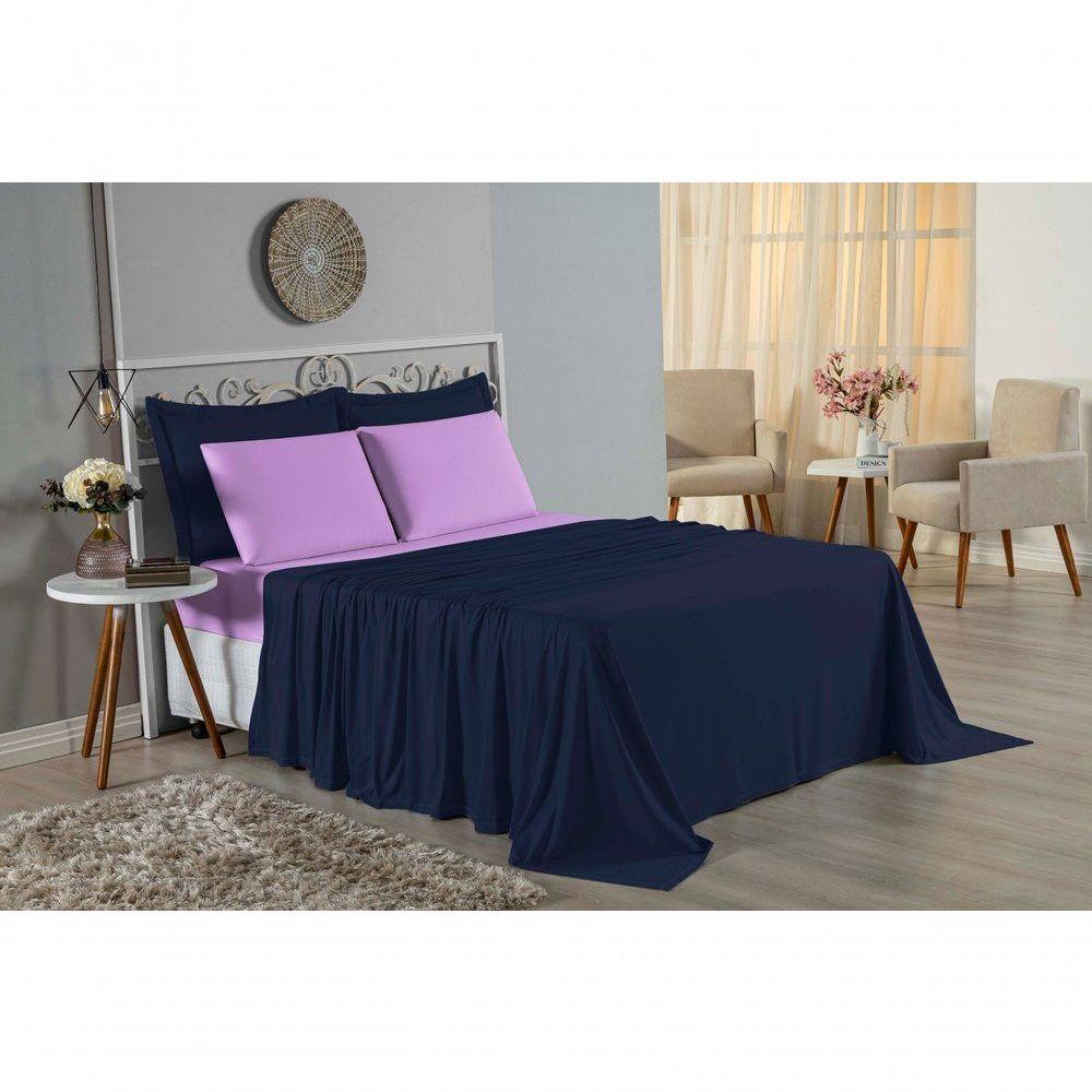 Jogo De Cama King Nobre 4 Peças Lençol Com Elástico De 30cm De Altura Malha 100% Algodão - Azul-marinho / Lilás