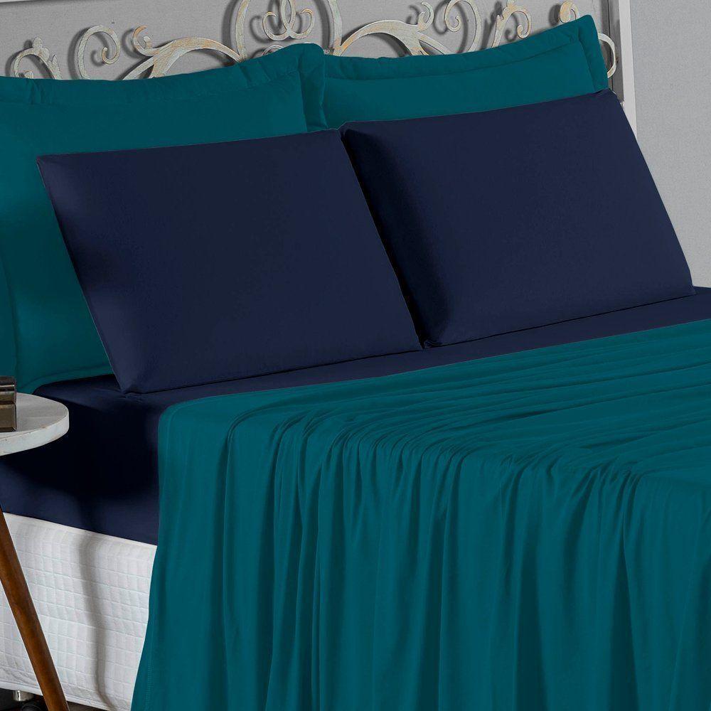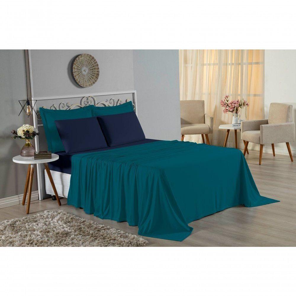 Jogo De Cama King Nobre 4 Peças Lençol Com Elástico De 30cm De Altura Malha 100% Algodão - Petróleo / Azul-marinho